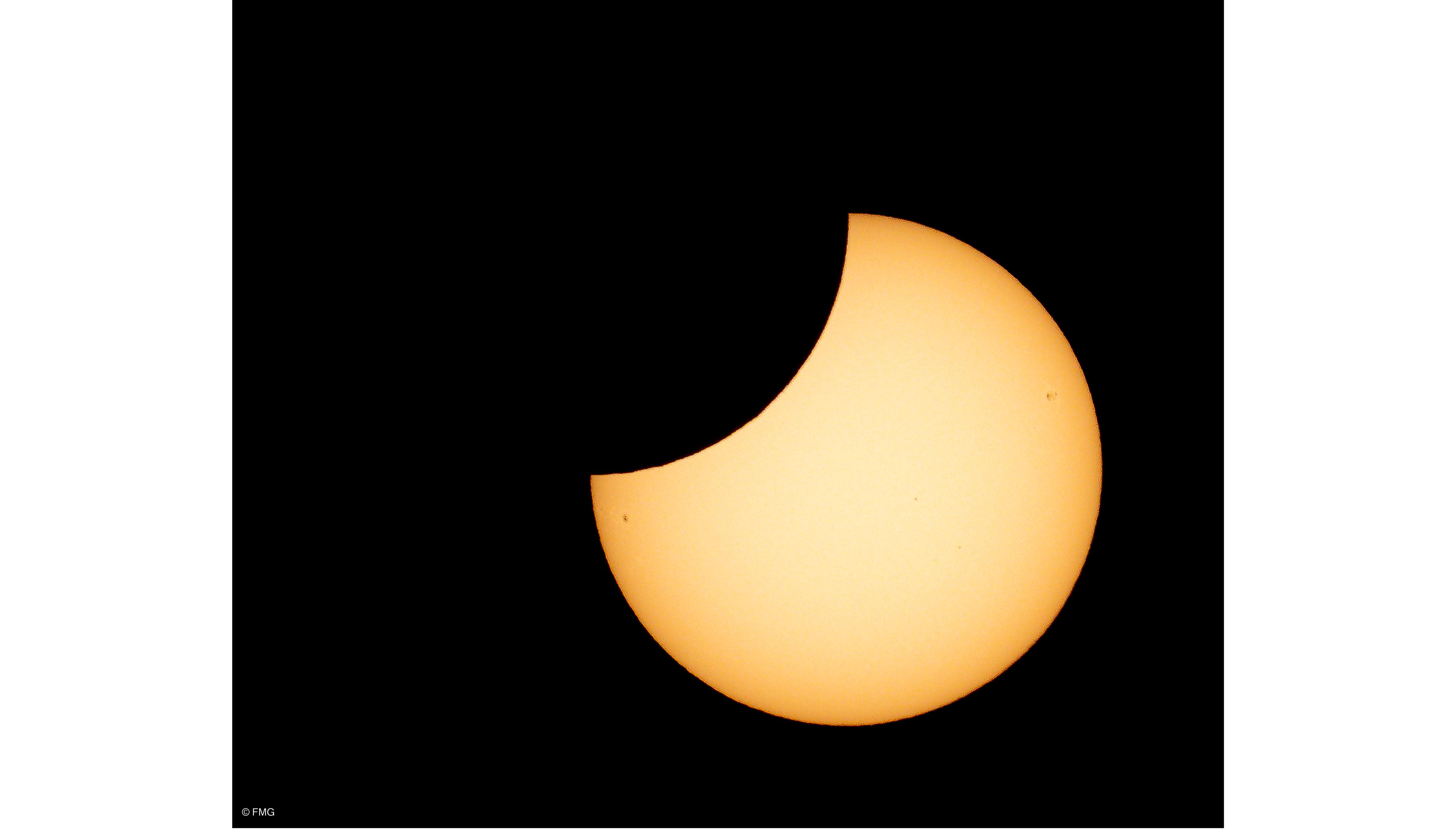 Per i più ‘ferrati’ in materia di fotografia astronomica diremo che uno scatto di questo tipo è stato realizzato (alle ore 12.12) con una fotocamera Nikon Z7 sulla quale è stato montato un teleobiettivo da 500 mm. con un’apertura di diaframma a f/11 e 100 ISO per la sensibilità, mentre il tempo di esposizione è stato di 1/2500 di secondo.