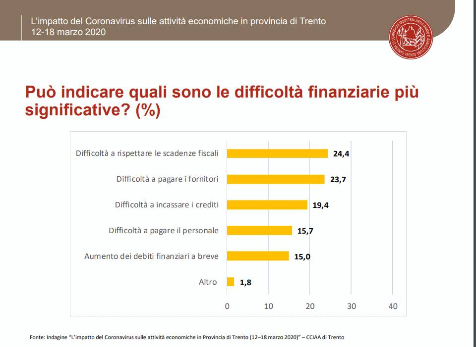 Per valutare con urgenza l’impatto che l’emergenza sanitaria in atto e le misure restrittive adottate per contrastarla stanno producendo sulle attività economiche della provincia di Trento, l’Ufficio studi e ricerche della Camera di Commercio – in stretto coordinamento con lSPAT (Istituto di statistica della Provincia di Trento) e come auspicato dalle associazioni di categoria imprenditoriali – ha realizzato un’indagine flash utile a fare il punto sulla situazione.