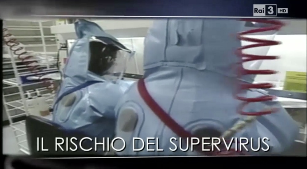 "Scienziati cinesi creano un supervirus polmonare da pipistrelli e topi. Serve solo per motivi di studio ma sono tante le proteste". Comincia così il servizio del Tg3 Leonardo del 16 novembre 2015; l'introduzione di copertina si conclude con una domanda: "Vale la pena rischiare?". "E' un esperimento certo ma preoccupa tanti scienziati - un gruppo di ricercatori cinesi innesta una proteina presa dai pipistrelli sul virus della Sars, la polmonite acuta, ricavato da topi. E ne esce un supervirus che potrebbe colpire l'uomo". "Resta chiuso nei laboratori, ovvio. Serve solo per motivi di studio; ma vale la pena correre il rischio, creare una minaccia così grande solo per poterla esaminare", viene detto in studio dopo la sigla e prima di lanciare il servizio di Maurizio Menicucci. "Vecchio quanto la scienza il dibattito sui rischi della ricerca - viene spiegato nel video - in fondo è il mito di Icaro che cade per avere sfiorato il sole con le ali di cera progettate dal padre Dedalo. Lo rilancia un esperimento realizzato in Cina, dove un gruppo di studiosi è riuscito a sviluppare una chimera, un organismo modificato innestando la proteina superficiale di un coronavirus trovato nei pipistrelli della specie piuttosto comune, detta 'naso a ferro di cavallo', su un virus che provoca la Sars, la polmonite acuta, anche se in forma non mortale nei topi si sospettava che la proteina potesse rendere l'ibrido adatto a colpire l'uomo, e l'esperimento lo ha confermato".