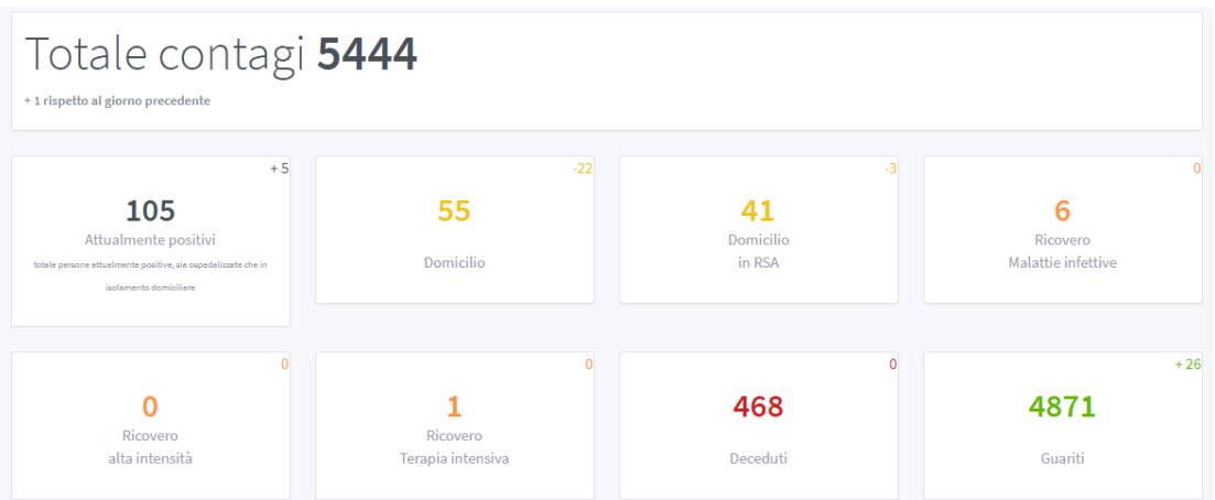 Attualmente in Trentino 105 persone risultano ancora positive. I guariti nelle ultime 24 ore sono stati 26. La situazione dei ricoveri ospedalieri rimangono 7, di cui 1 in rianimazione.