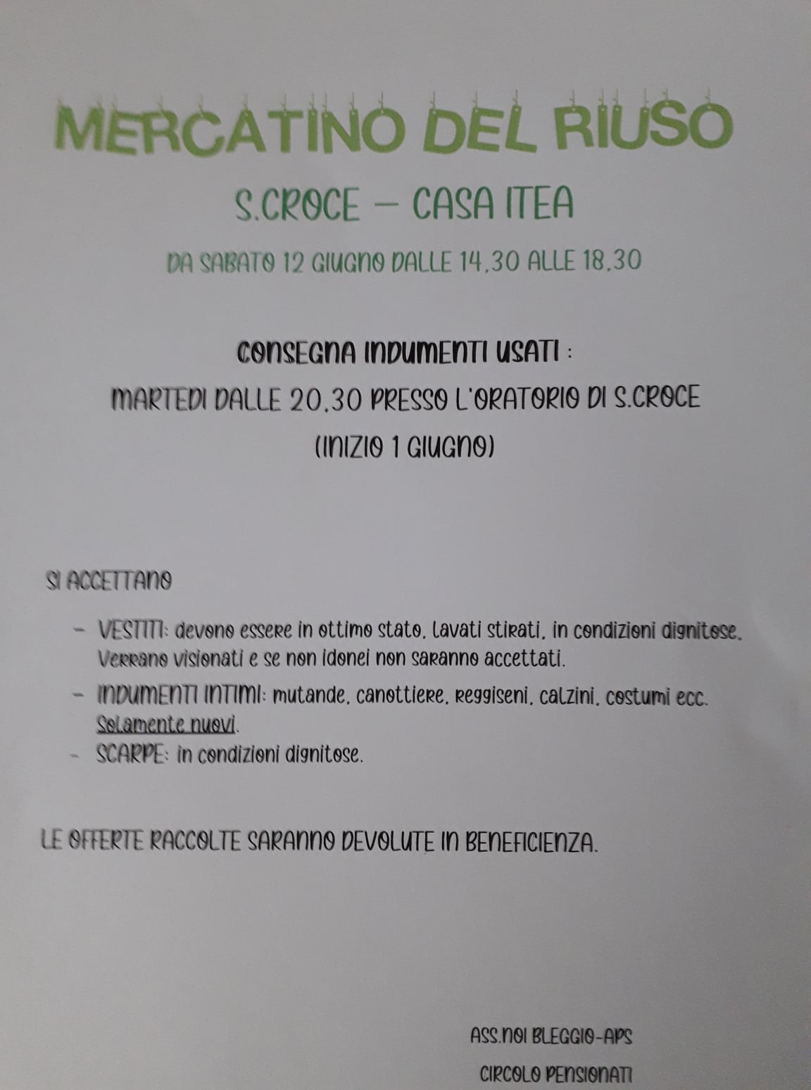 A questo scopo l'Associazione Noi San Luigi Bleggio invita la comunità a partecipare consegnando i propri vestiti che non si utilizzano più - in buono stato, lavati e stirati – presso l'Oratorio di Santa Croce ogni martedì alle 20.30.