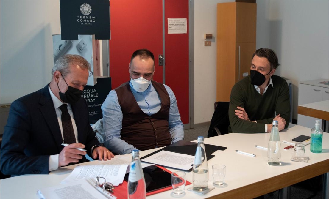 ESTERIORI. Il progetto Comano 2025 prende sempre più vita. Oggi, mercoledì 16 marzo, è stato ufficialmente definito l’accordo con l’impresa Collini Lavori S.p.a., a capo della cordata che include anche Grisenti srl e Tecnoimpianti Obrelli srl. Al tavolo delle firme presenti il Presidente delle Terme di Comano Roberto Filippi e l’Amministratore Delegato di Collini Lavori Luca Gherardi.