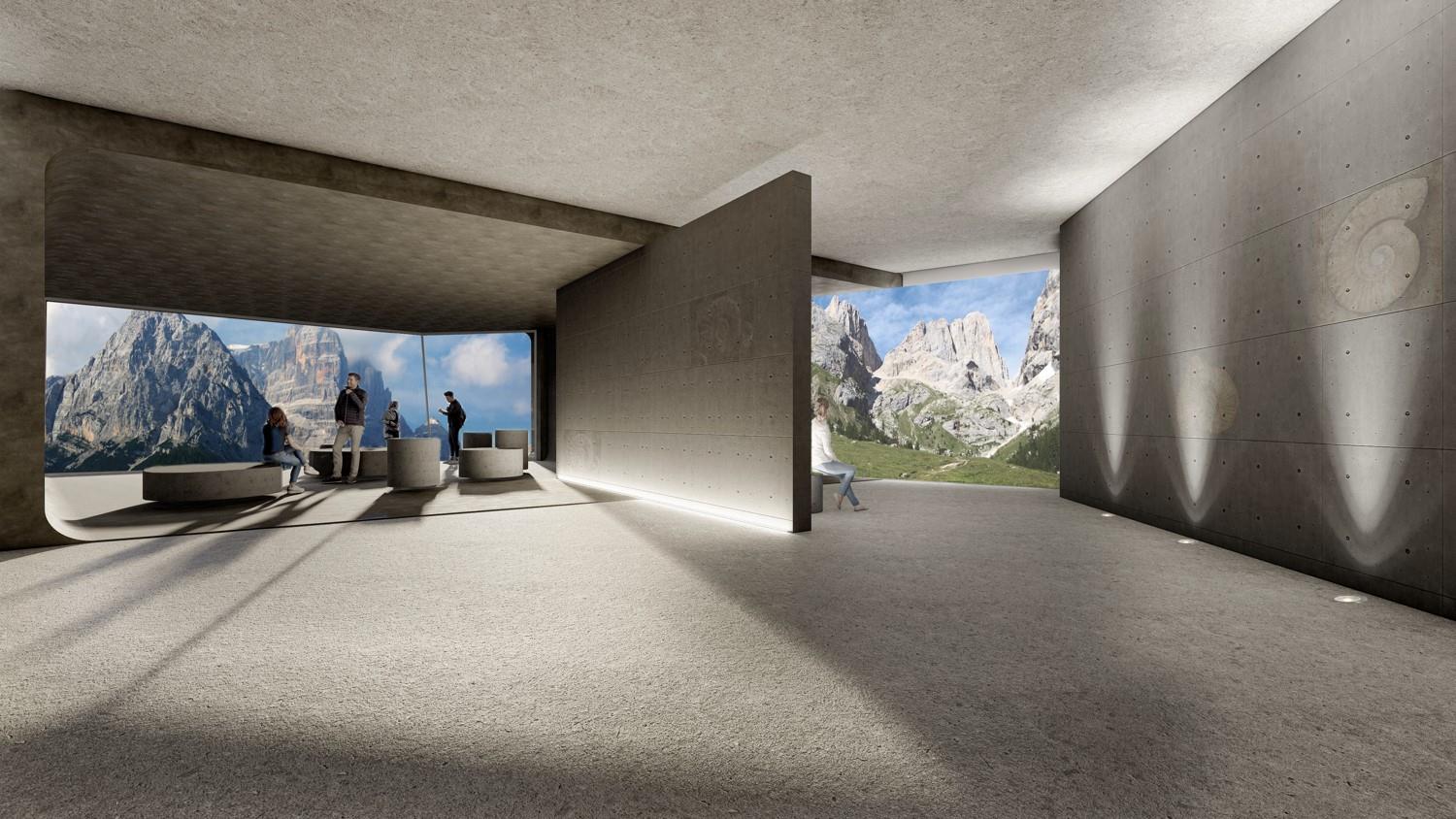 La riqualificazione del rifugio Doss del Sabion sarà coerente con i principi generali del progetto principale e andrà a “dialogare” con il nuovo impianto funiviario e i nuovi spazi della struttura a servizi, sia sui collegamenti orizzontali che verificali.