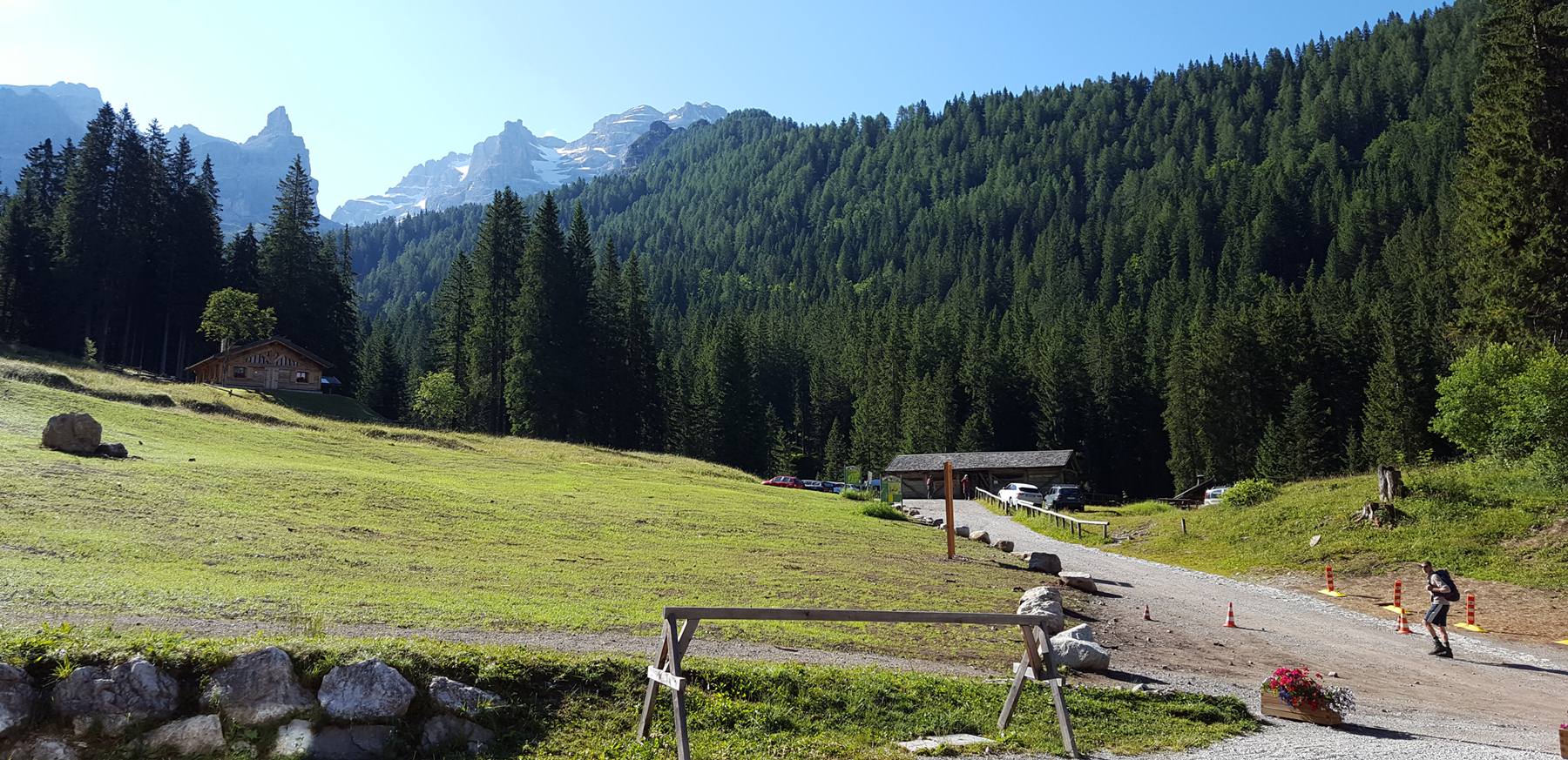 L’idea di spostare il parcheggio veniva riproposta ciclicamente da anni ma è dal 2016 che si è davvero creduto nella necessità di questa soluzione. Fin dall’inizio del suo mandato, infatti, il presidente del Parco, Joseph Masè, ha cercato un accordo tra tutti gli attori interessati dall’opera. La situazione si è definitivamente sbloccata nella primavera 2018, dopo un complesso iter autorizzativo che ha incontrato i pareri positivi dei Servizi provinciali Foreste e Fauna, Sviluppo sostenibile e Aree protette, Urbanistica e Tutela del Paesaggio, Geologico, la deroga della Comunità di Valle al Piano Territoriale di Comunità, il parere di conformità urbanistica di Tre Ville, comune amministrativo, e l’autorizzazione della Comunità delle Regole di Spinale e Manez, ente proprietario.