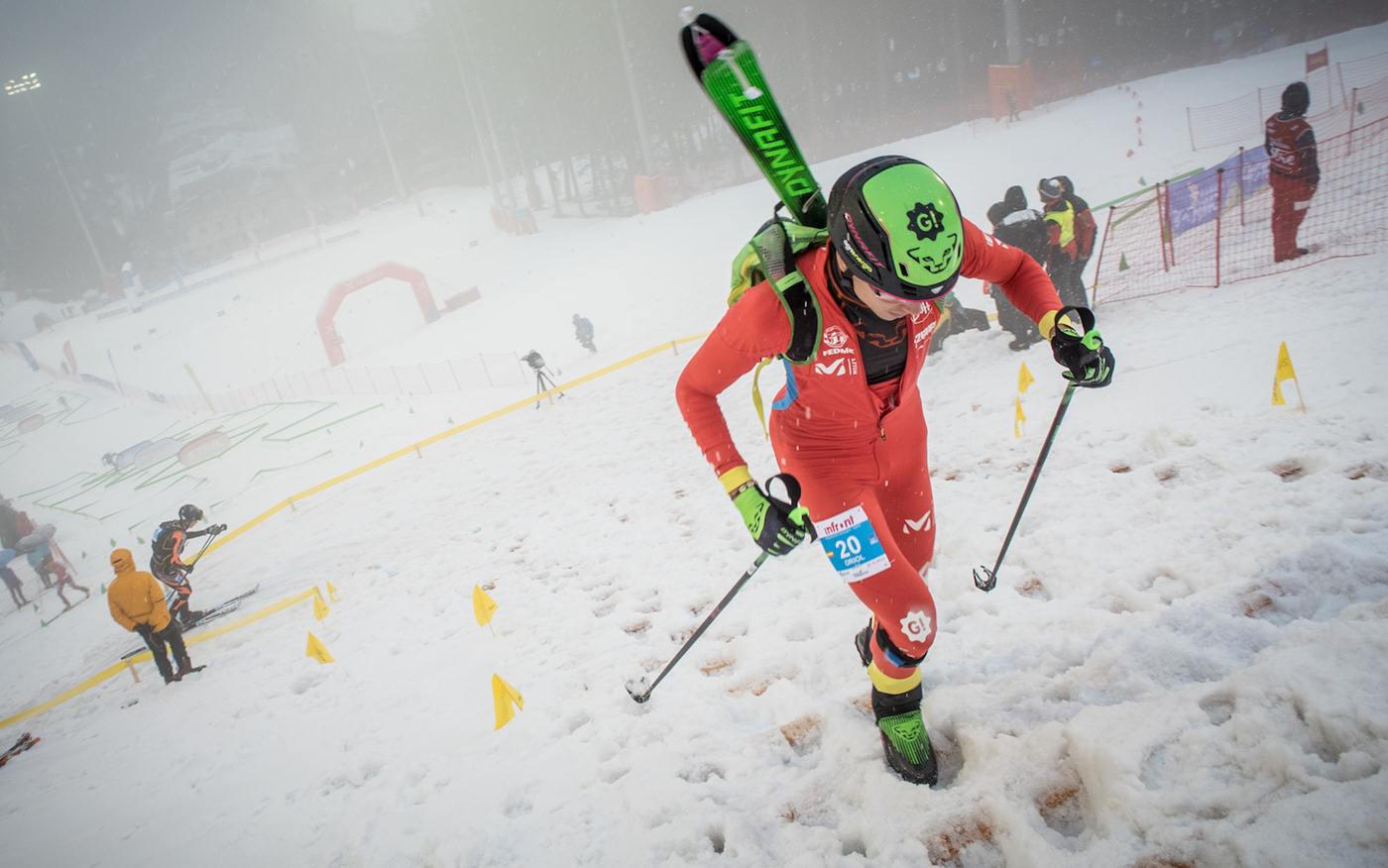 I trionfatori di giornata rispondono ai nomi di Matteo Eydallin e di Axelle Gachet Mollaret nell’assoluta, Davide Magnini e Giulia Murada fra gli under 23, Giovanni Rossi e Ekaterina Osichkina fra gli junior. Il vero capolavoro italiano giunge dunque nella competizione al maschile, che si è giocata su 13,5 km, con un dislivello di 1.670 metri con tre salite e tre discese, dove il piemontese di Salice d’Ulzio Matteo Eydallin ha posto il proprio sigillo, confermando di avere un feeling particolare con Madonna di Campiglio, visto che qui ha vinto ben tre volte fra Coppa del Mondo e Ski Alp Race Dolomiti di Brenta. Non è stata un’affermazione facile la sua, al primo passaggio nei pressi della cabinovia Spinale, a valle, era al comando il valtellinese di Albosaggia Michele Boscacci, Nel tratto con gli sci nello zaino, però, Eydallin si è fatto sotto, hanno affrontato gli altri due giri assieme e nell’ultima discesa il piemontese ha messo il turbo, staccando il compagno di squadra. Sul traguardo di piazza Sissi Eydallin ha chiuso dopo 1h28’47”, staccando di 26 secondo Boscacci, ma la terza piazza è andata al giovane Davide Magnini, al suo primo podio in assoluto in una gara individual di Coppa del Mondo. Il trentino di Vermiglio ha dato il tutto per tutto per cercare di conquistare la Coppa del Mondo under 23, ma per pochi punti si è dovuto arrendere al francese Thibault. Quarta piazza poi per Robert Antonioli, vincitore della sfera di cristallo 2019, seguito dallo svizzero Martin Anthamatten e dal francese William Bon Mardion, quindi dagli altri azzurri William Boffelli e Federico Nicolini, a suggellare la grande giornata made in Italy con 6 italiani fra i primi 8. Nella espoir trionfa Davide Magnini, prevalendo sui due francesi Anselmet Thibault e Samuel Equy.