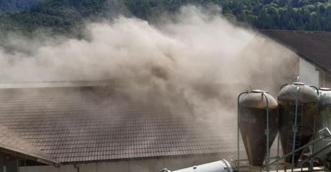 SELLA GIUDICARIE. L'incendio è divampato poco prima di mezzogiorno creando una colonna di fumo visibile a grande distanza. Si tratta di una stalla a Breguzzo nel comune di Sella Giudicarie, in località Coré.