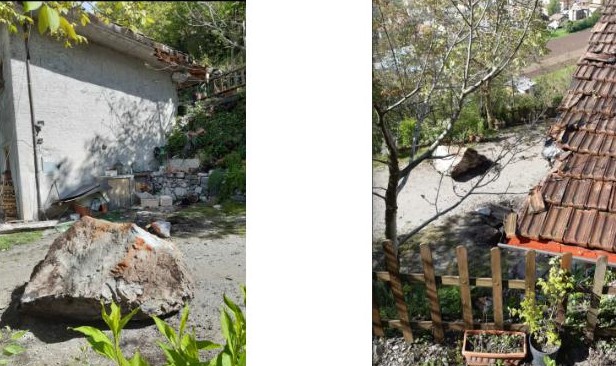 Il sasso fortunatamente non ha creato complicazioni a persone o mezzi ma ha lesionato la copertura marginale di un edificio un tempo deposito – stalla appartenete all'epoca al compianto medico Mario Delaiti e ora di proprietà della famiglia Maratti.