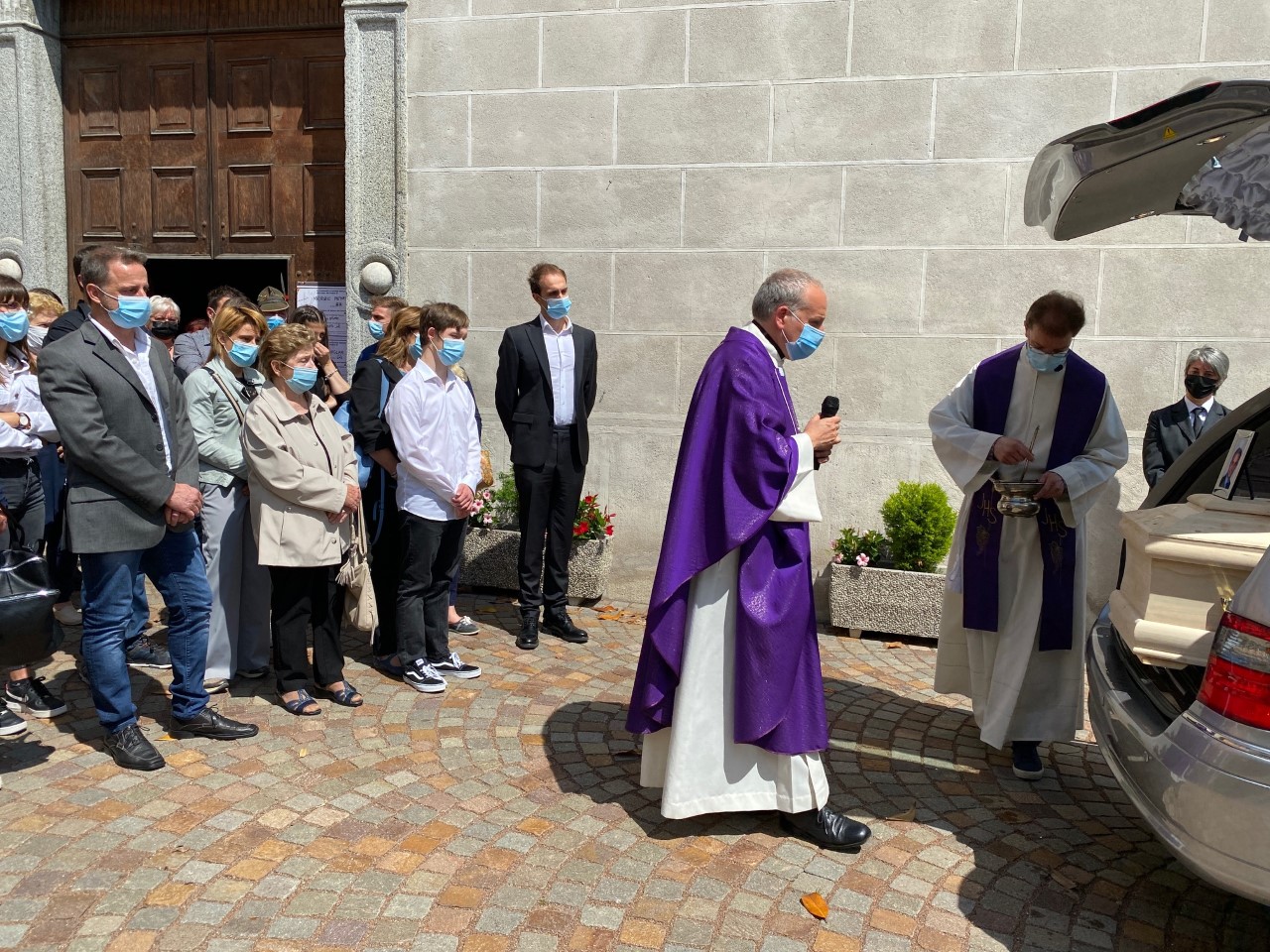 Nel frattempo dalla cantoria i canti in alternanza al parlato del celebrante: la cantata "Amici Miei" ha fatto da cornice alla funzione. Per ultimo l'incamminamento sul sagrato dove l'agenzia funeraria B2 di Condino ha trasferito la bara chiara verso la cremazione.