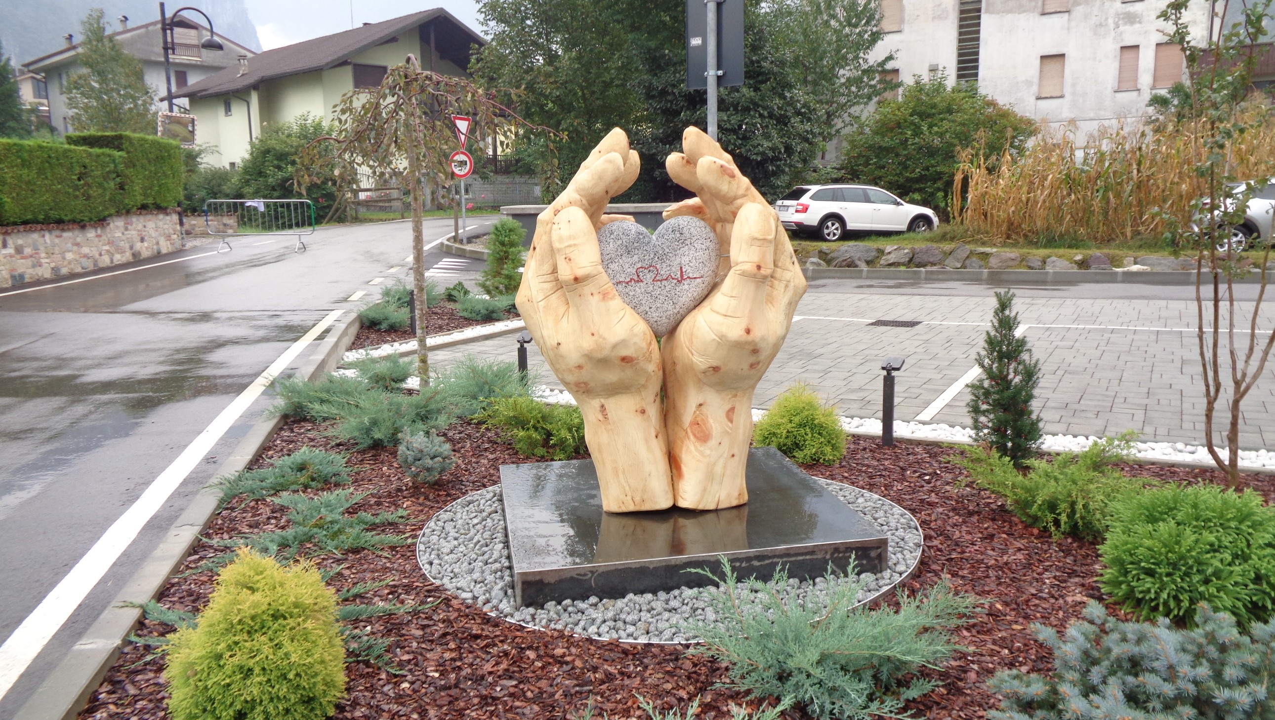 Infine, per gratificare ulteriormente quella realtà di primo soccorso, un capolavoro in legno realizzato dall'artista locale Mario Brugnoni e messo a dimora a due passi dall'ingresso. Si tratta di due mani giganti, riprova della disponibilità d'aiuto e di conforto di coloro che vi lavorano dentro quella sede.