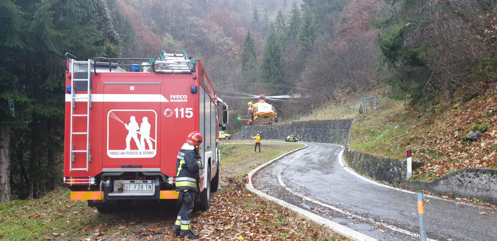 Sul posto sono intervenuti immediatamente i soccorsi in quello che è stato un intervento complicato, tra urgenza e difficoltà tecniche non indifferenti, non ultime il maltempo e l'impervietà del terreno.