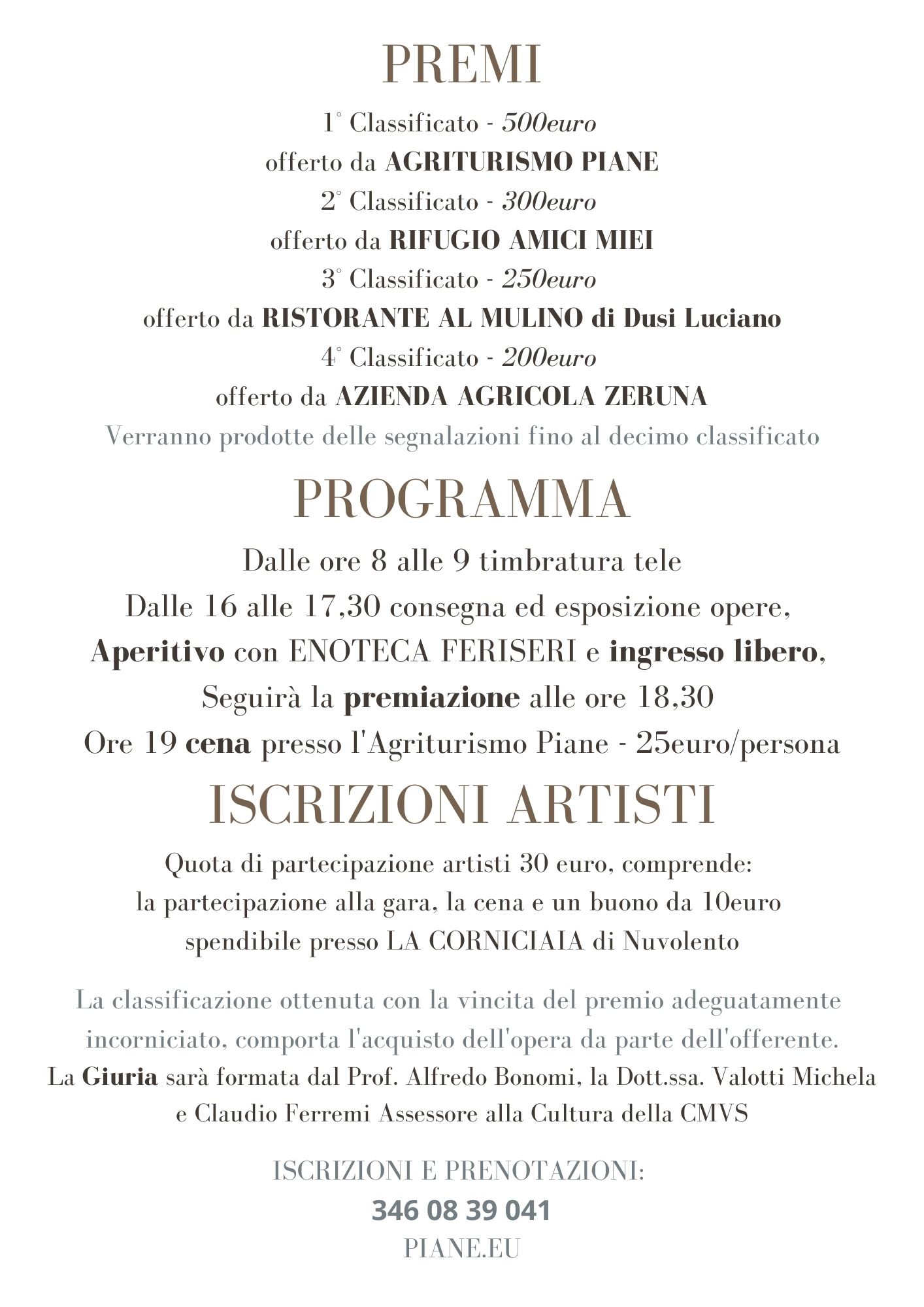ISCRIZIONI ARTISTI E PRENOTAZIONI CENA: 346 08 39 041
