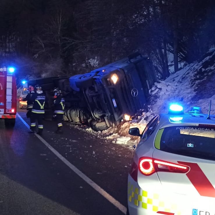 Ad essere coinvolto, fortunatamente, solamente un camion che viaggiava in direzione di Tione.