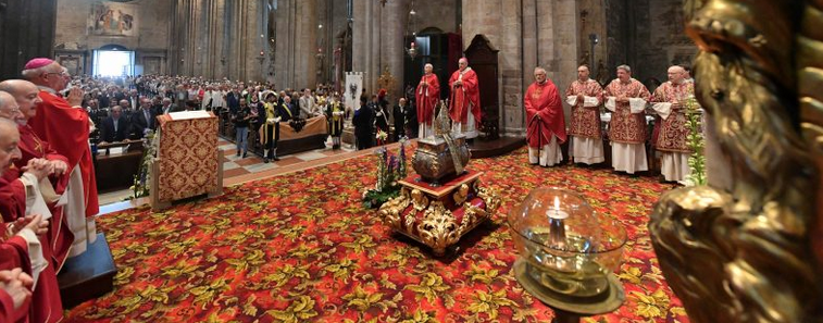 Infine, un invito: leghiamo sempre più il nostro cuore a Sanzeno, per contemplare, assieme a Vigilio, la forza umile di quelle ceneri. Meraviglia d’amore che è all’origine della nostra Chiesa.