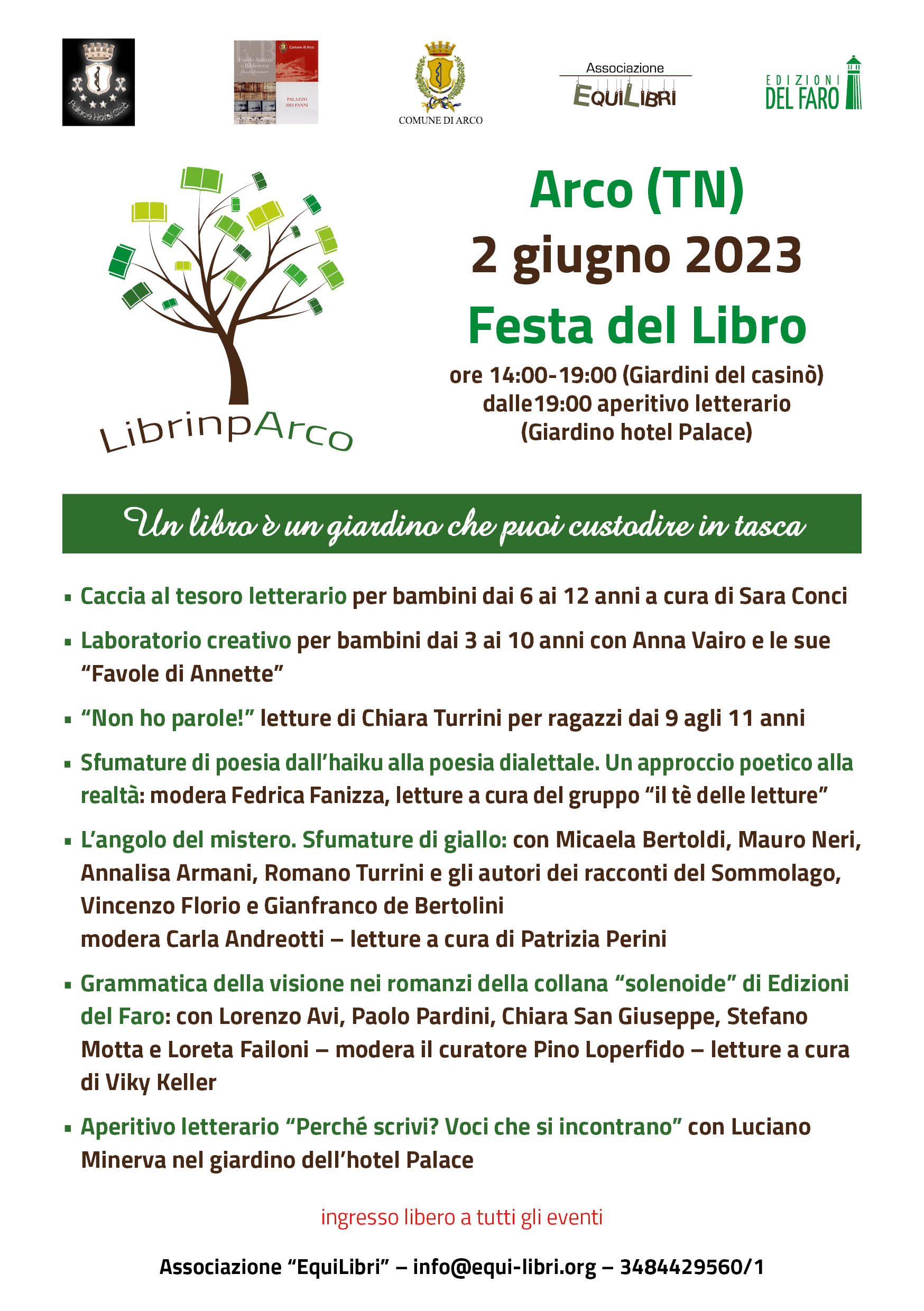 ● ore 14.30: caccia al tesoro letterario per bambini da 6 a 12 anni, a cura di Sara Conci;