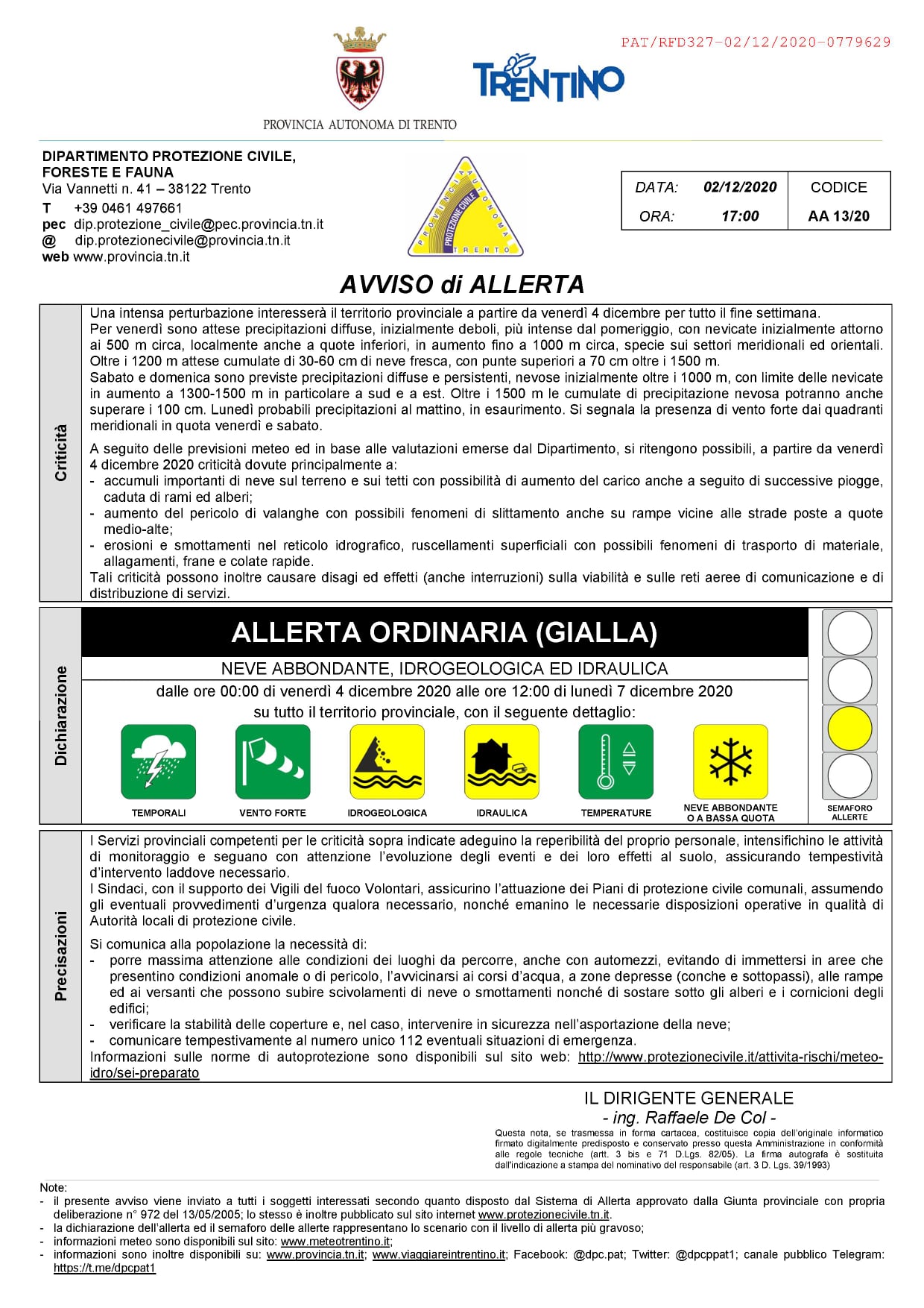 In allegato il comunicato della Protezione Civile.