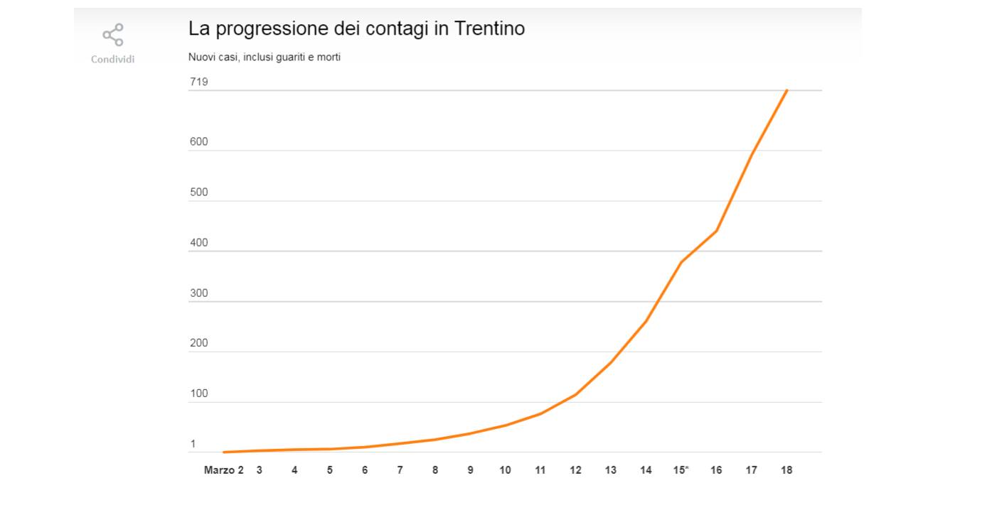 116 i contagiati in Giudicarie sui 719 registrati in Trentino. Crescono anche nelle nostre vallate i casi di contagi di Coronavirus, ed in particolare si stanno confermando come zone più problematiche la Valle del Chiese, che risente della vicinanza con la Lombardia e la Val Rendena che risente dell'ondata turistica che c'è stata nell'ultimo periodo precedente alla chiusura degli impianti.