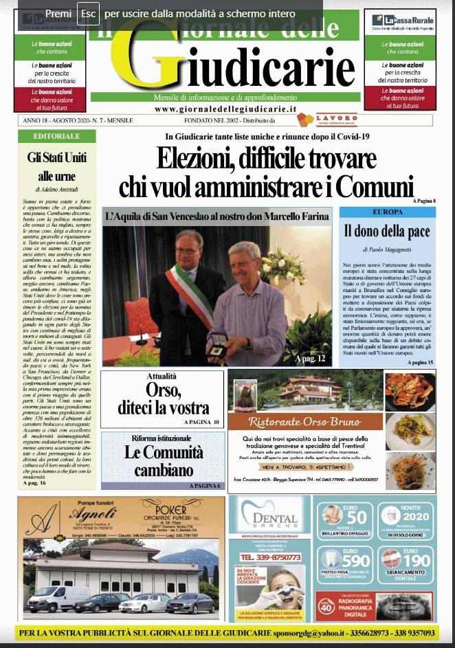 L'associazione che edita il Giornale delle Giudicarie chiede a chi non lo avesse ricevuto di segnalarlo all'indirizzo di posta elettronica This email address is being protected from spambots. You need JavaScript enabled to view it. oppure di chiamare il numero della cooperativa: 0465-326420 oppure quello del Giornale delle Giudicarie, 0465322934.