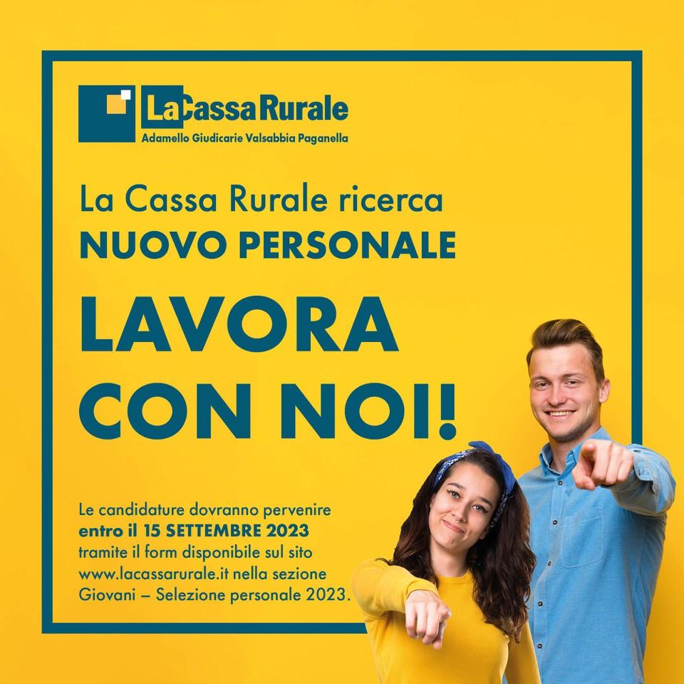 Le candidature dovranno pervenire entro il 15/09/2023 attraverso la compilazione del form disponibile sul sito www.lacassarurale.it nella sezione Giovani – Selezione del personale 2023.