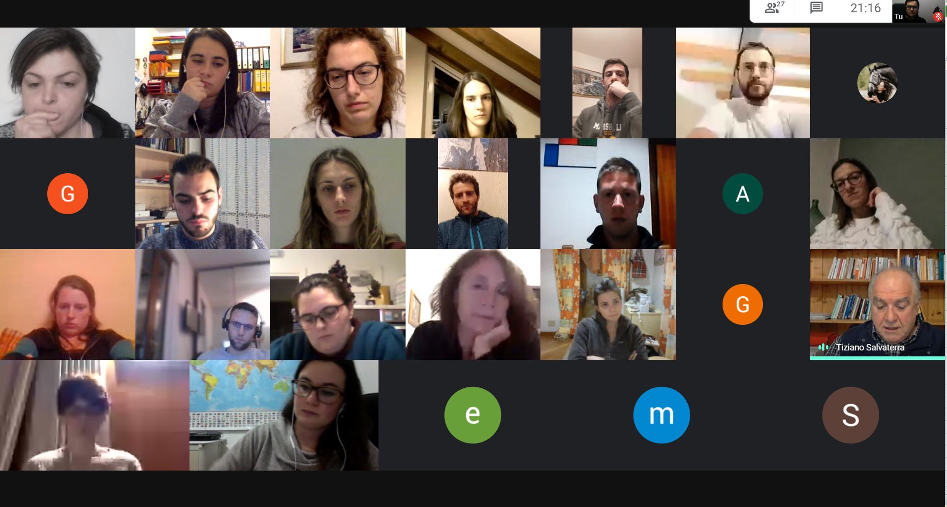 ESTERIORI. Ore 20:15 di giovedì 3 dicembre: dai cinque Comuni delle Esteriori si collegavano in videoconferenza i 25 componenti del Tavolo del Piano Giovani Giudicarie Esteriori. A mediare l'incontro il Referente Tecnico-Organizzativo Stefano Zanoni. Ospite il professore Tiziano Salvaterra.