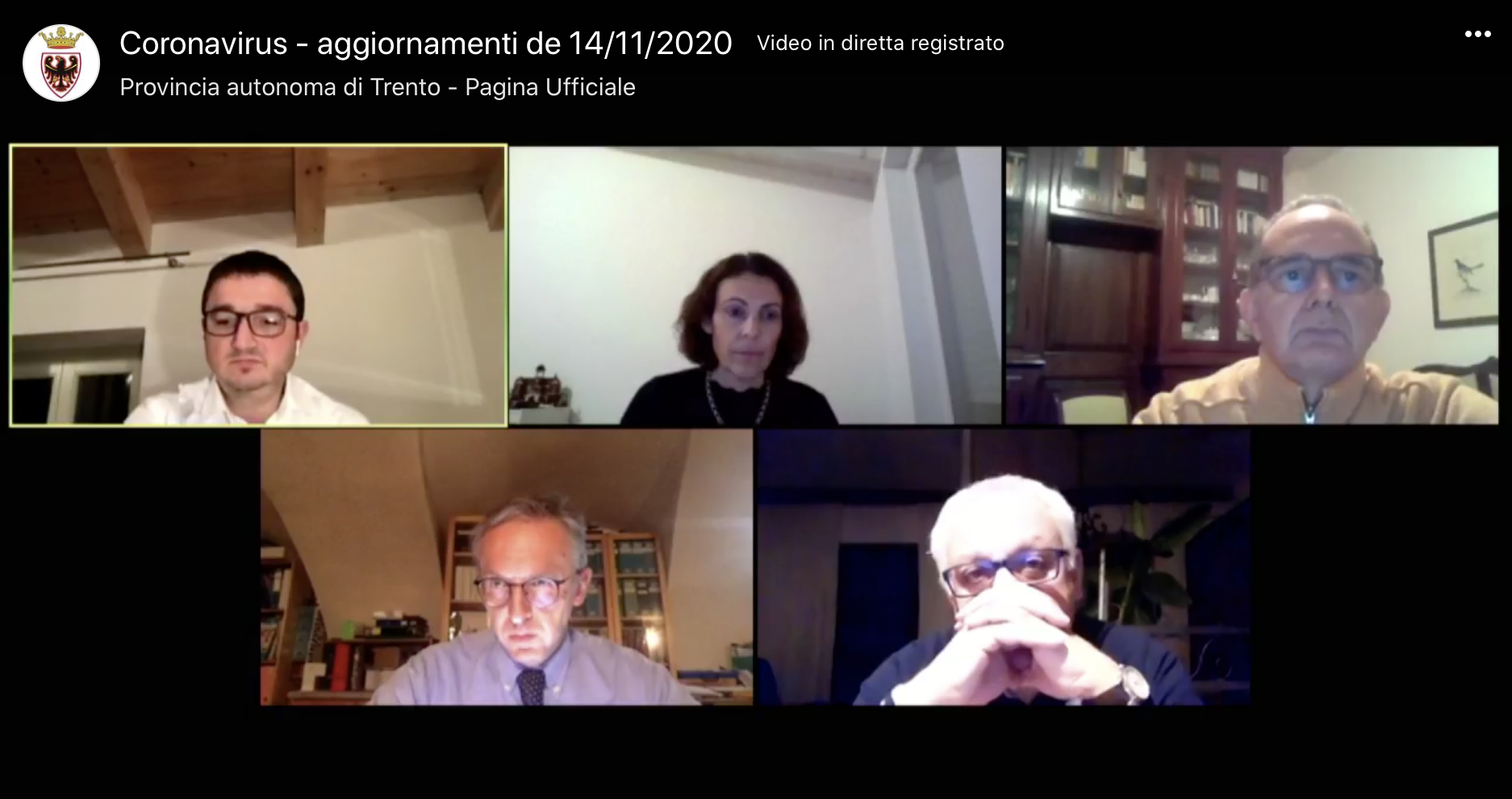 Il quadro della situazione sanitaria è stato illustrato dall'assessore alla salute Stefania Segnana, affiancata dal dirigente generale Giancarlo Ruscitti e dal direttore generale dell'Apss Pier Paolo Benetollo. Le nuove regole contenute nell'ordinanza sono state invece spiegate dal capo dell'esecutivo e dal dirigente generale Raffaele De Col. “Dobbiamo essere chiari: la situazione è grave e si potrebbe aggravare” ha premesso il presidente Fugatti, che ha evidenziato come solo se i trentini continueranno ad avere comportamenti responsabili forse la provincia di Trento potrà essere confermata in “zona gialla” anche in futuro.