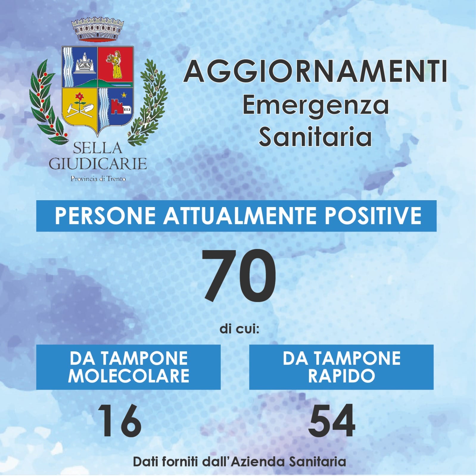«Cari concittadini, la seconda ondata dell'emergenza sanitaria da Covid-19 che stiamo vivendo è sempre più preoccupante e difficile. L'Amministrazione comunale, ritiene opportuno comunicare i dati forniti dall'Azienda Sanitaria in merito alle persone attualmente positive residenti a Sella Giudicarie che sono in totale 70, di cui 16 individuate con tampone molecolare e 54 con tampone antigenico rapido. Il numero 70 deve farci da monito sull'importanza di #rispettare scrupolosamente le #regole e di attuare #corportamenti #responsabili. L'impegno di tutti è attualmente l'unico rimedio disponibile per contrastare la pandemia...».
