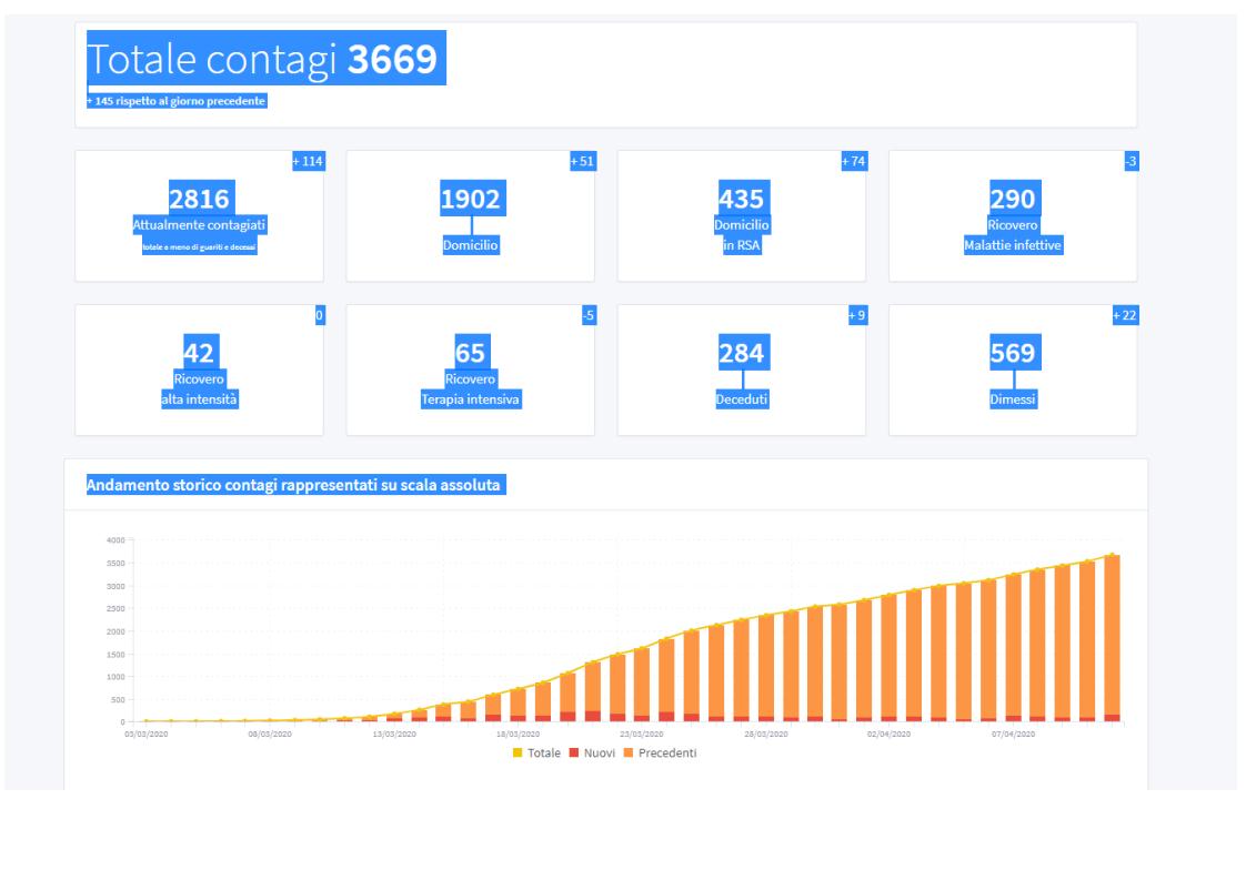 8 decessi, per un totale di 318 morti in Trentino. 76 i contagi nelle ultime 24 ore che porta il numero dei contagiati rilevati a 3891. Tra questi ultimi casi 15 si sono rilevati in Giudicarie.