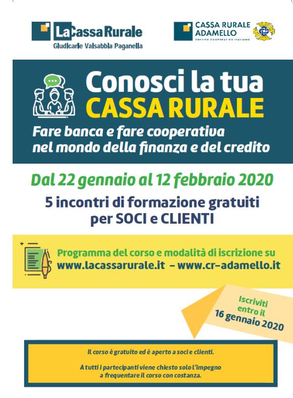 Per partecipare è necessario compilare il form d’iscrizione disponibile su www.lacassarurale.it oppure www.cr-adamello.it entro e non oltre il 16 gennaio 2020.