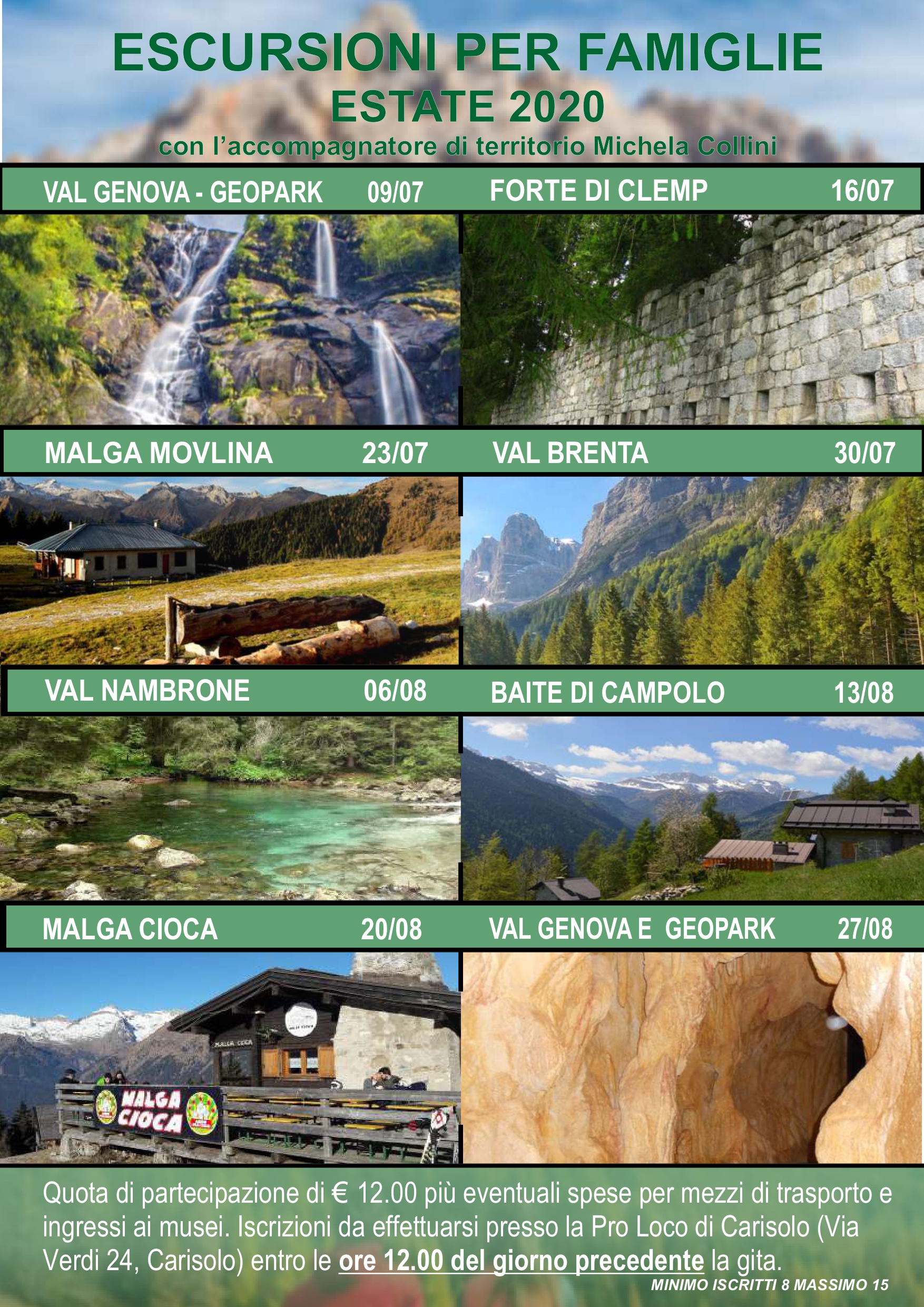 Tutto organizzato per l'estate 2020 a Carisolo. Primo incontro giovedì 9 luglio, alla volta della Val Genova.