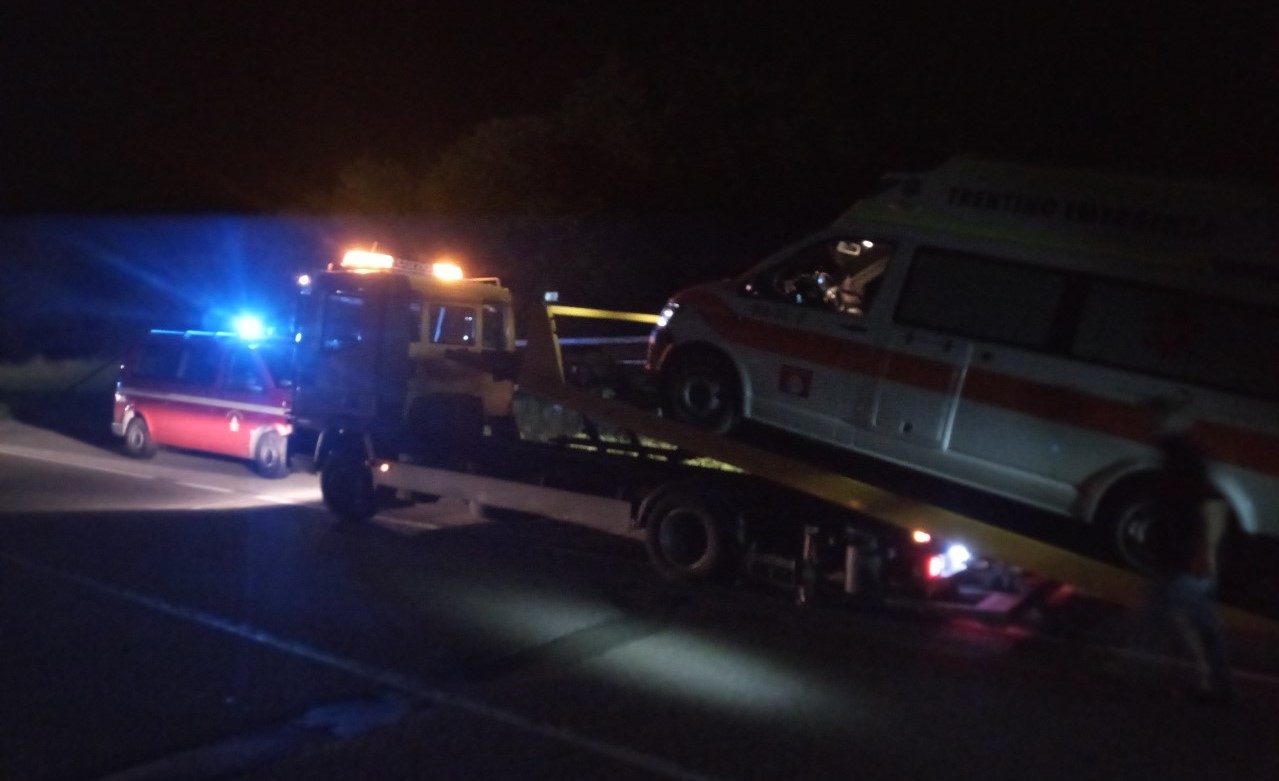 PIEVE DI BONO. L'ambulanza stava trasportando da Borgo Chiese a Tione una bambina quando, poco sopra la centrale idroelettrica di Cimego, è stata centrata da una femmina di cervo che ha mandato l'auto di soccorso in panne.