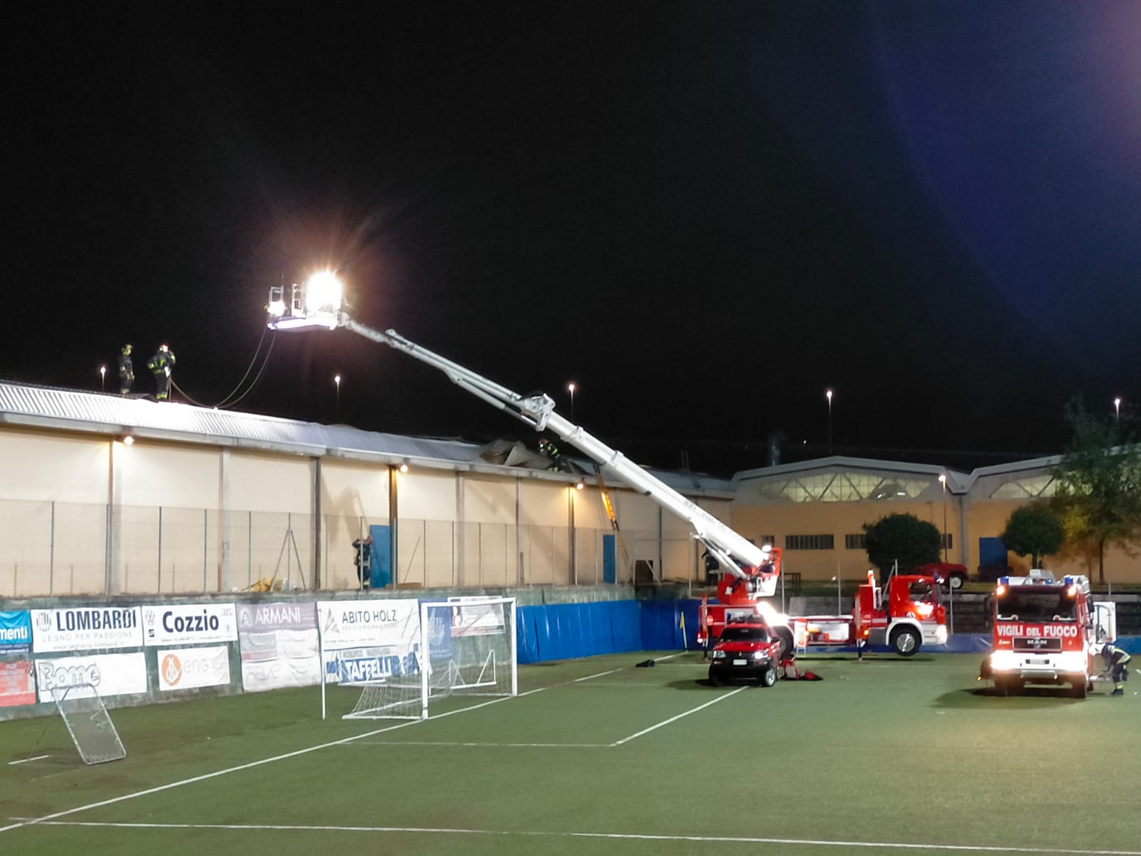 Nel giro di poco tempo pioggia e soprattutto il forte vento hanno sollevato buona parte della copertura creando disagi, pericoli ma anche danni.