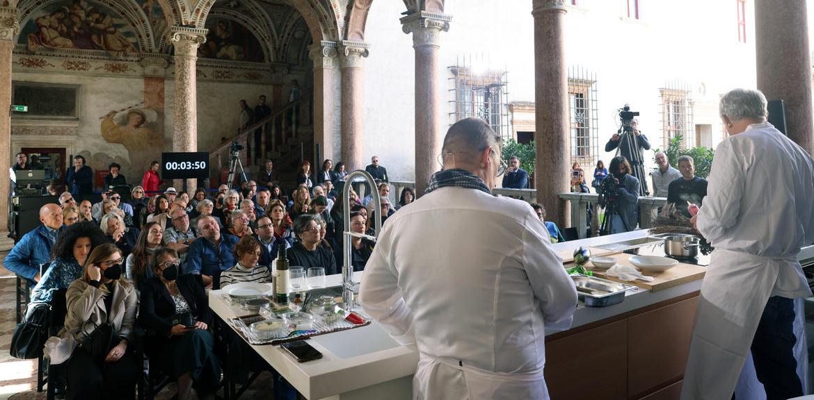 Non più finta imitazione della carne, la cucina vegetariana è oggi espressione di necessità e di istinti che spaziano dalla ricerca di un legame interculturale e ancestrale, fino al bisogno di una profonda riconnessione con la natura. A parlarne, al Trentodoc Festival, Pietro Leemann, chef di Joia, il primo ristorante vegetariano in Italia ad ottenere una stella Michelin, e Alessandro Gilmozzi, a sua volta chef stellato di El Molin a Cavalese, noto per la sperimentazione delle materie prime nel suo menu. Accanto a loro, due donne d’eccezione del panorama che lega montagna e cibo: Eleonora Cunaccia, titolare di Primitivizia, azienda agricola che raccoglie, confeziona e vende erbe spontanee, e Elena Paternoster, titolare di Mieli Thun. «Mangiando un piatto preparato con i prodotti della natura, sentiamo vibrare qualcosa al suo interno – spiega Leemann, sintetizzando una filosofia condivisa dagli ospiti –. Si tratta della stessa cosa che sentiamo vibrare in noi: è una riconnessione col mondo».