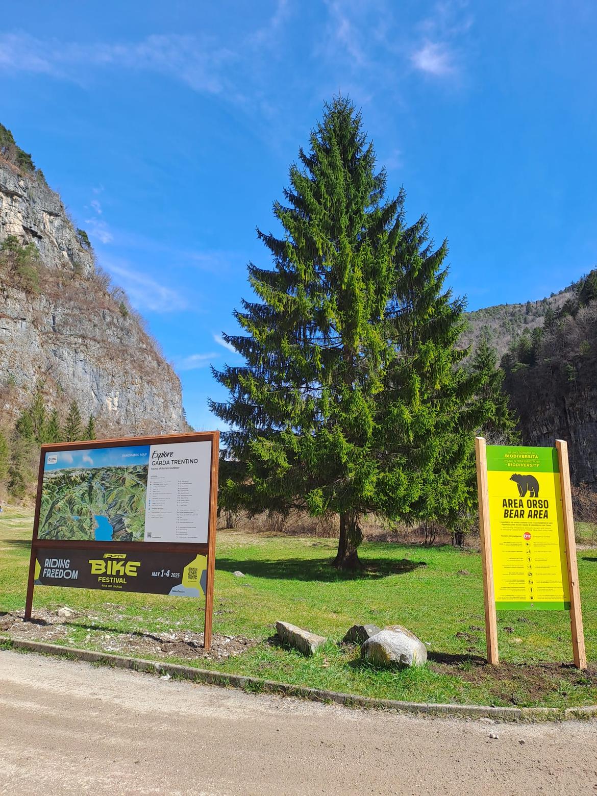 Qui sopra interessante accostamento tra il Bike Festival Riva del Garda e l'area orso. In questo modo i biker delle Marathon potranno conoscere tutte le regole in caso di incontro con il plantigrado e potranno "vivere un'esperienza indimenticabile" come auspicato dagli organizzatori.