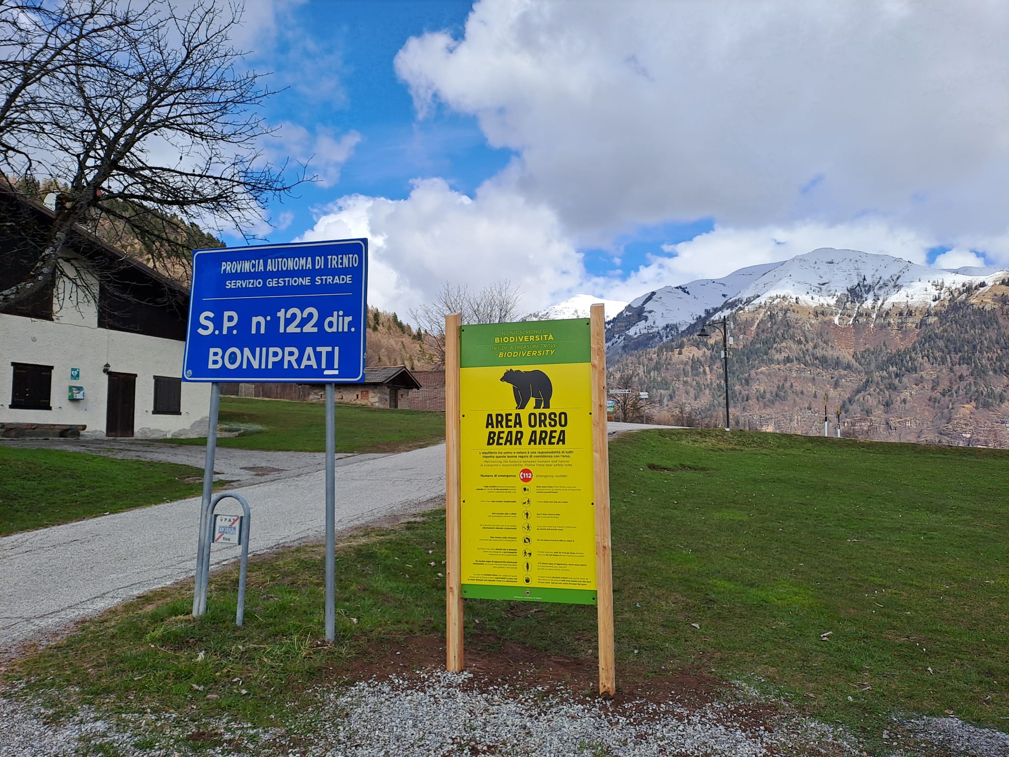 Qui sopra Boniprati una tipica Area orso dove l'uomo si è permesso di costruire qualche casetta e il Servizio Gestione Strade della Provincia Autonoma di Trento di asfaltare la strada provinciale.