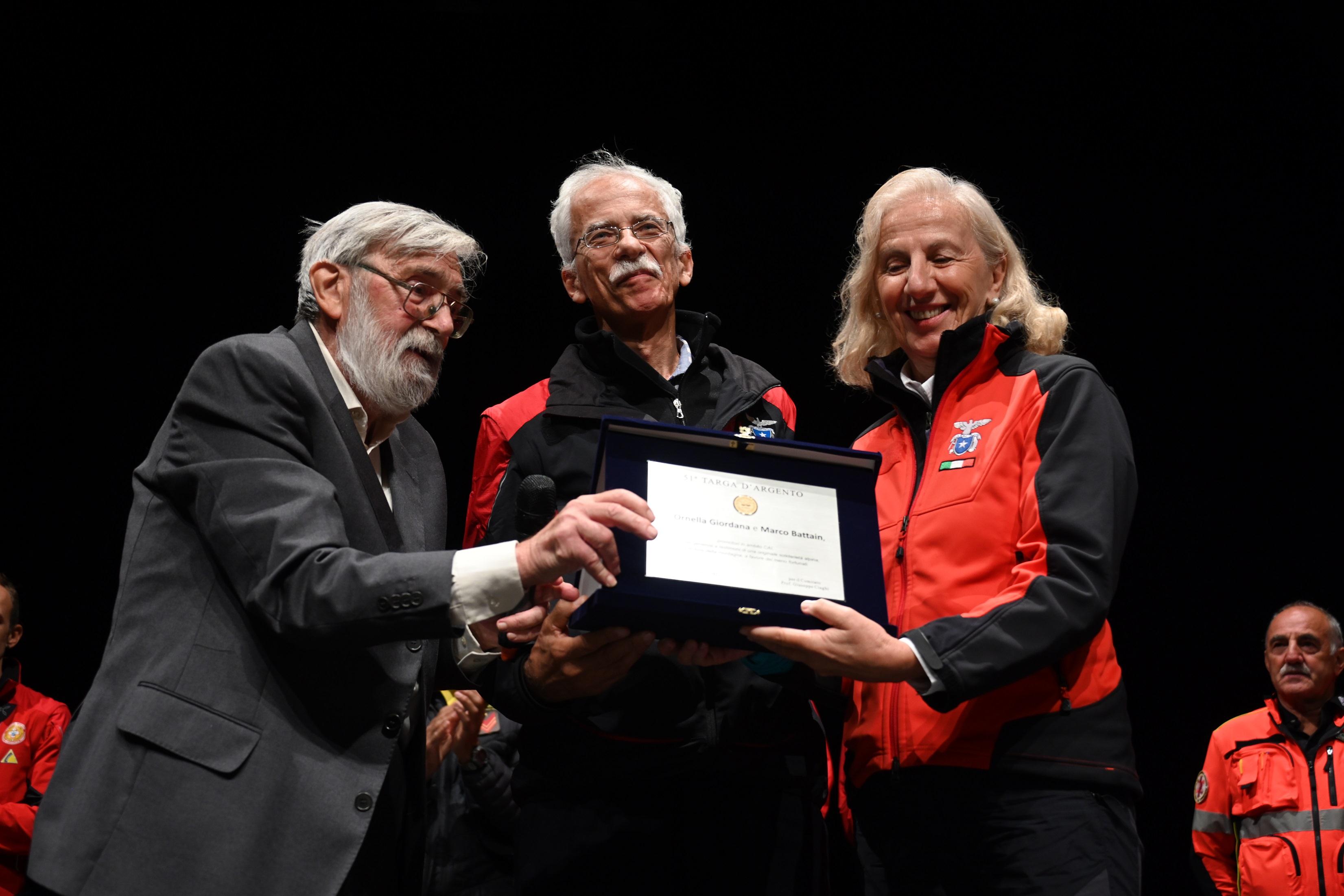 PINZOLO - La 51esima edizione del Premio internazionale della Solidarietà alpina si è svolta oggi a Pinzolo con la consegna della Targa d’argento a Ornella Giordana e Marco Battain, una coppia piemontese che, nella vita, ha scelto di dedicarsi agli altri promuovendo, tra i primi, in ambito Cai, la “Montagnaterapia”, un concetto di ambiente naturale come fonte di benessere che deve e può essere reso accessibile a tutti mettendo a disposizione le tecniche della frequentazione della montagna in sicurezza, supporti tecnici come le joëlette, per fare un esempio, ma anche dimostrando l’accettazione degli altri, la dedizione e la capacità di trasmettere l’amore per la montagna.