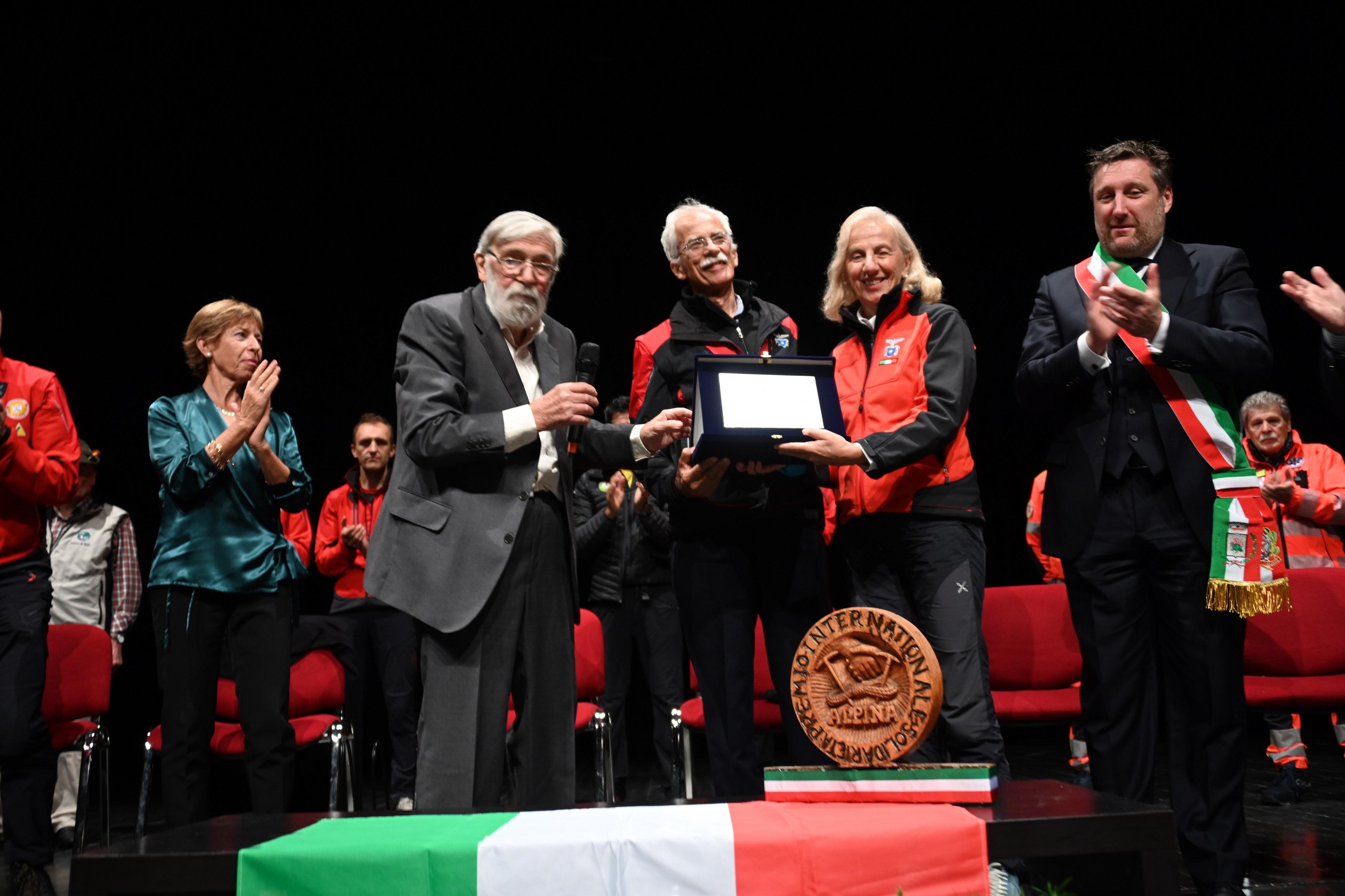 “Angiolino era un gran testone, ma buono e generoso - ha detto la nipote Alba Binelli ricevendo un riconoscimento da parte di Walter Cainelli (Presidente Soccorso alpino e speleologico Trentino) e di Simone Maestri (Capostazione di Pinzolo) - spero che il Premio possa continuare nel suo ricordo perché era ciò che desiderava”. “Siamo rimasti senza due colonne - ha “risposto” il vicepresidente Giuseppe Ciaghi - e ciascuno dei componenti del Comitato, quest’anno, ci ha messo un po’ del suo. I premiati li avevamo condivisi con Angiolino grazie al quale, in cinquant’anni di Premio, abbiamo toccato i cuori e le menti di tutti. Angiolino era amore per il prossimo. Qui a Pinzolo persone di culture e lingue diverse, anche molto distanti, si sono guardate negli occhi, parlate e ritrovate uguali”.