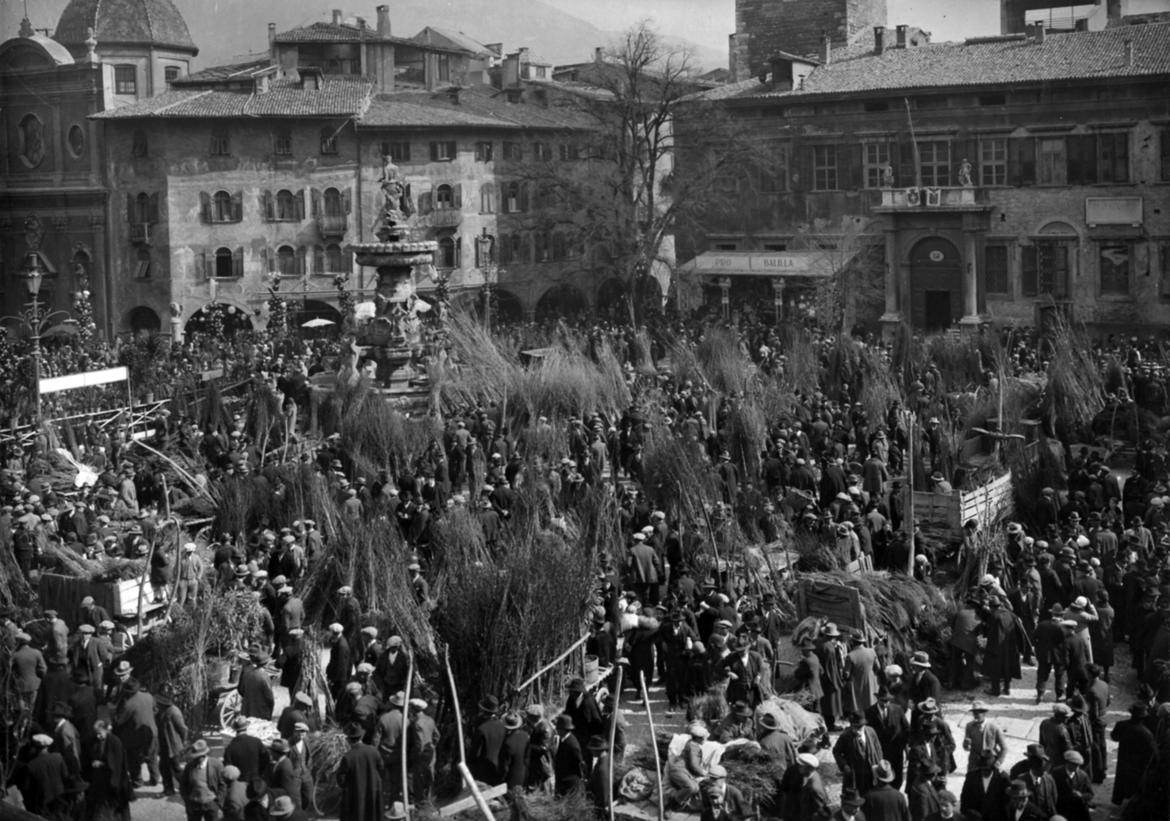 Credit Foto. Sergio Perdomi, Fiera di San Giuseppe in piazza Duomo a Trento, 1930 ca., stampa su carta alla gelatina sali d'argento, cm 12,2 x 17. Trento, AFS, Fondo miscellaneo ex Soprintendenza Statale