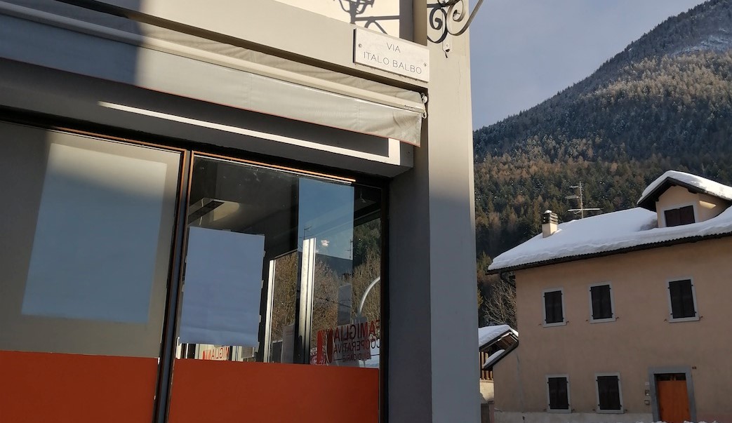 In questo caso però la stranezza di una via dedicata a Italo Balbo ha perseguito la follia, in un territorio come il Trentino che ha valori cooperativi storici e fondanti la targa dell'emblema del fascismo è esposta proprio sull'edificio della famiglia cooperativa di consumo alimentare.