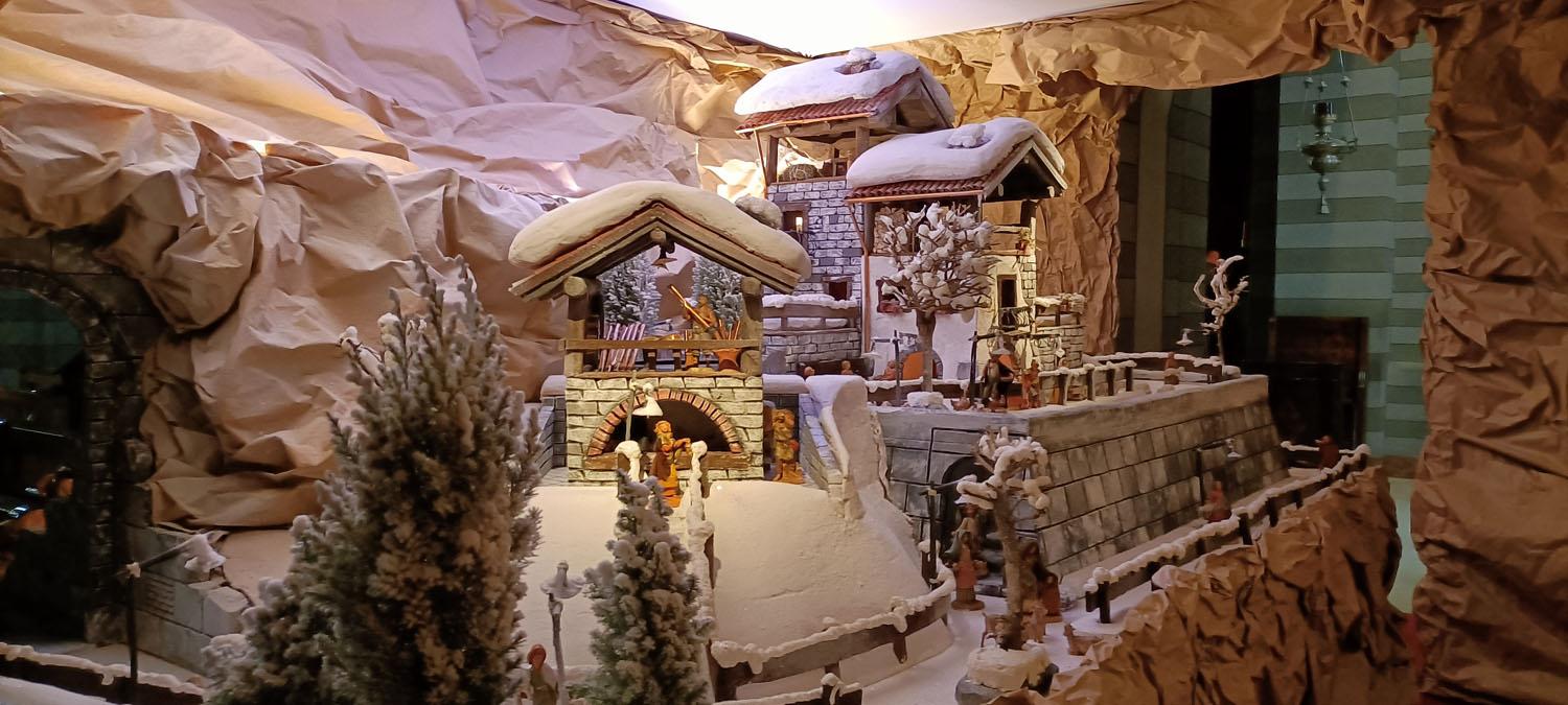 Novità assoluta di questa edizione è che il visitatore può entrare nel Presepio, c’è infatti una passerella che permette di entrare fisicamente trovandoti a passare tra i gruppi di case – a sinistra e a destra -completamente innevati.
