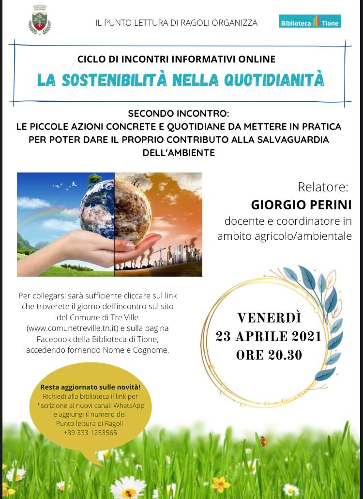 Il secondo incontro online gratuito organizzato dal punto di lettura di Tre Ville, vede come protagonista Giorgio Perini, docente e coordinatore in ambito agricolo e ambientale.