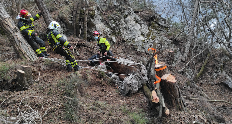 L'incidente è avvenuto su una strada forestale di montagna; l'animale è caduto nel burrone sottostante, per fortuna si è bloccato contro delle piante a circa una decina di metri dal precipizio.