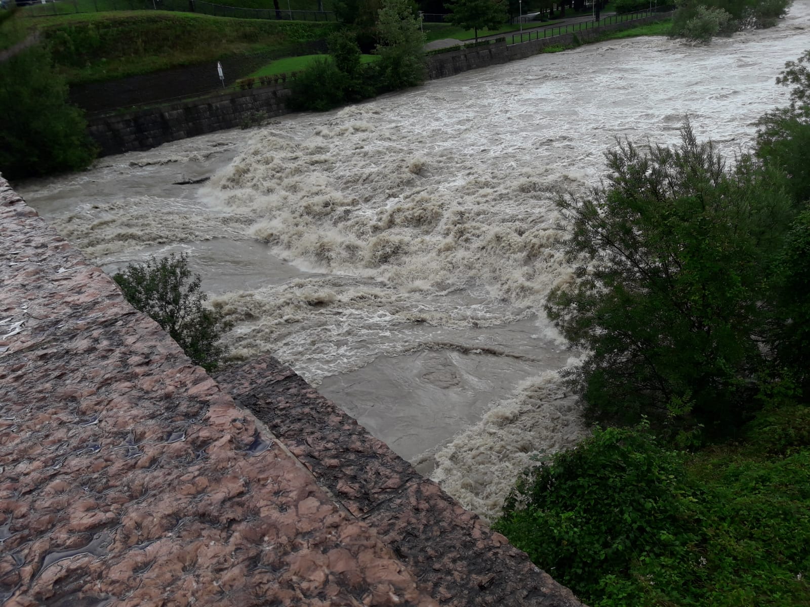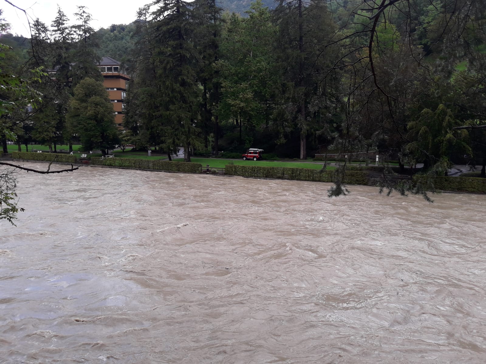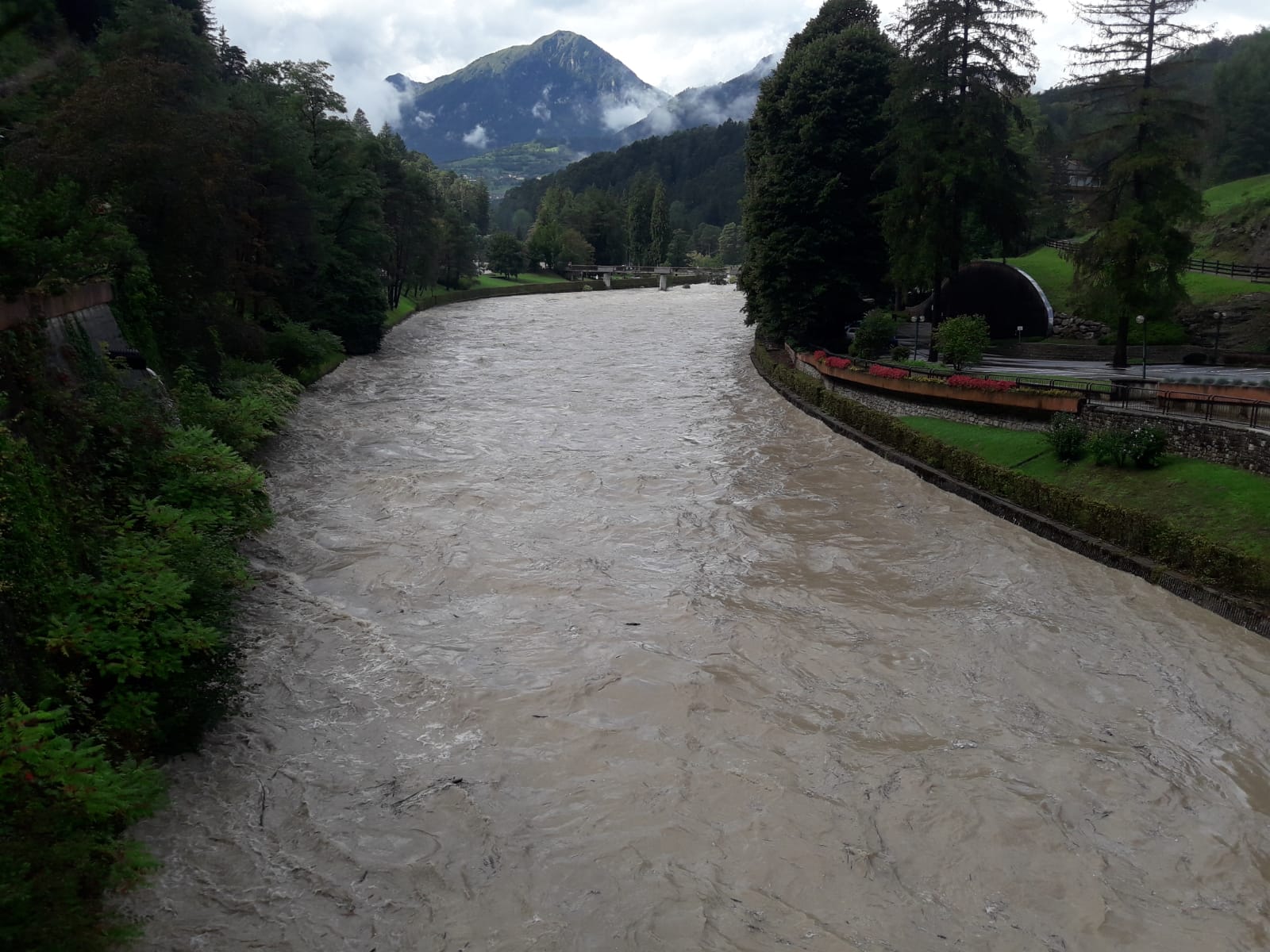 Allertante il livello del fiume raggiunto a Comano Terme, di cui si riportano alcune immagini: