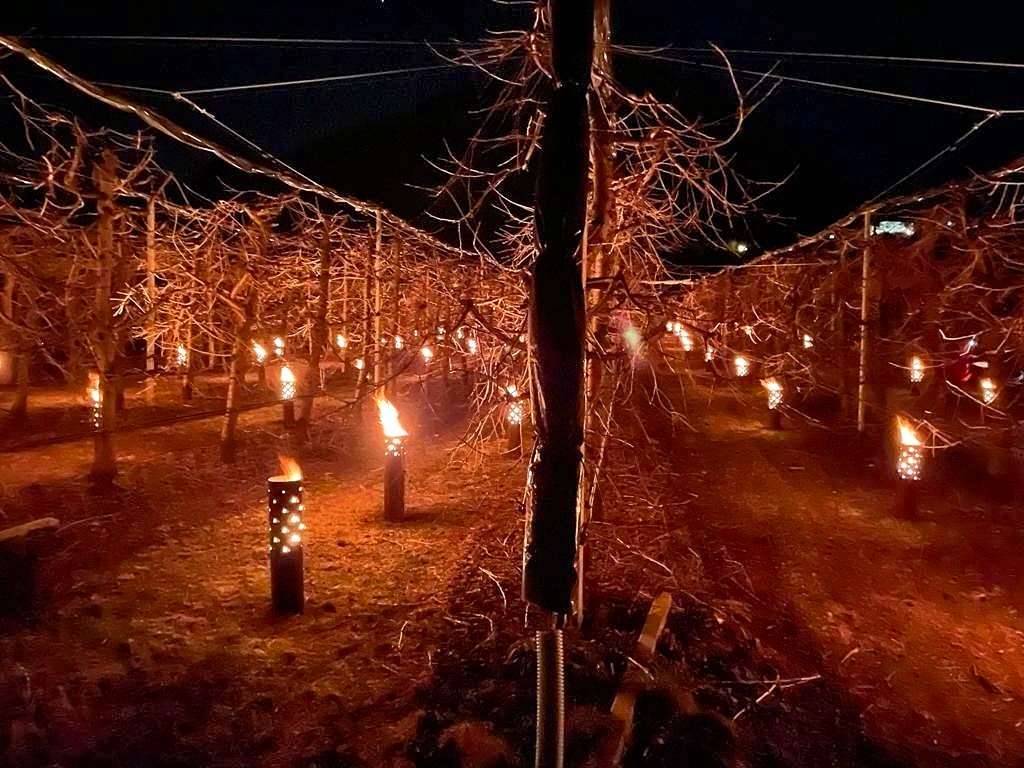 Per far fronte alla problematica, si ricorre a sistemi di prevenzione come impianti antibrina o l’accensione di stufette a pellet o ancora di candele di paraffina. Ed è così che da giorni appaiono le incantevoli fiaccole ad illuminare i frutteti.