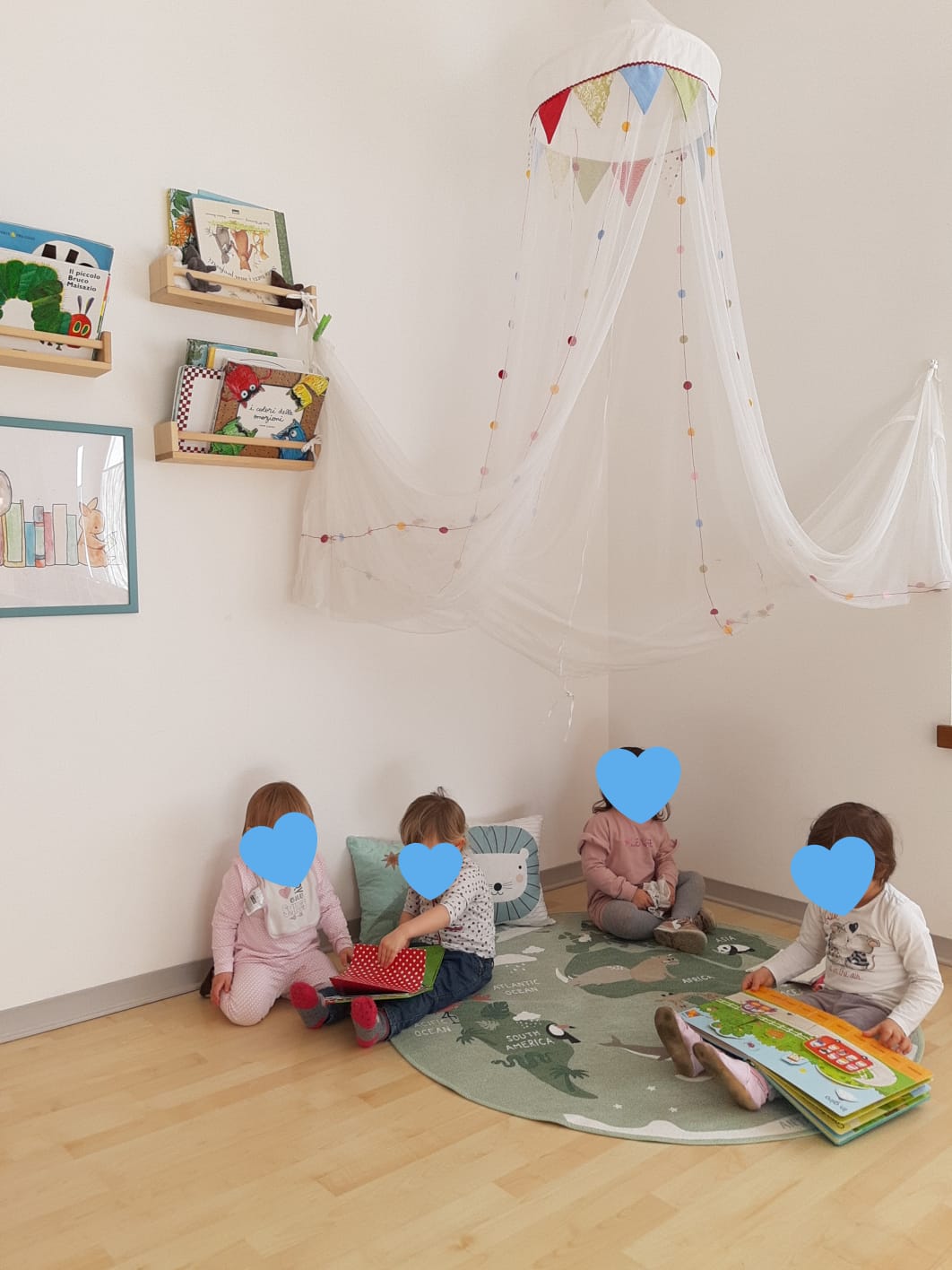 Anche se per ovvi motivi non gli è più concesso di entrare nella struttura ma gli è chiesto di affidarci il figlio all'entrata, c'è molta comprensione da parte di mamme e papà. Entrano invece durante la fase dell'inserimento, cioè quel primo periodo in cui il bambino appena arrivato deve ambientarsi gradualmente.