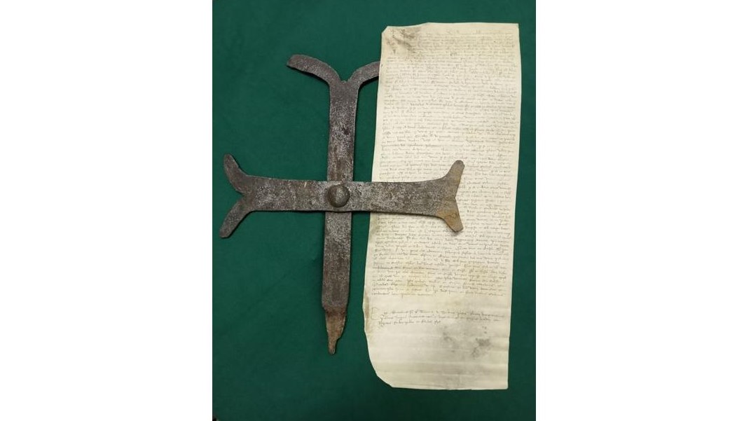 “La croce in ferro caduta dal campanile di San Vigilio durante il temporale del 25 luglio 2021 è depositata presso l'Archivio Storico Comunale, accanto alle pergamene.”