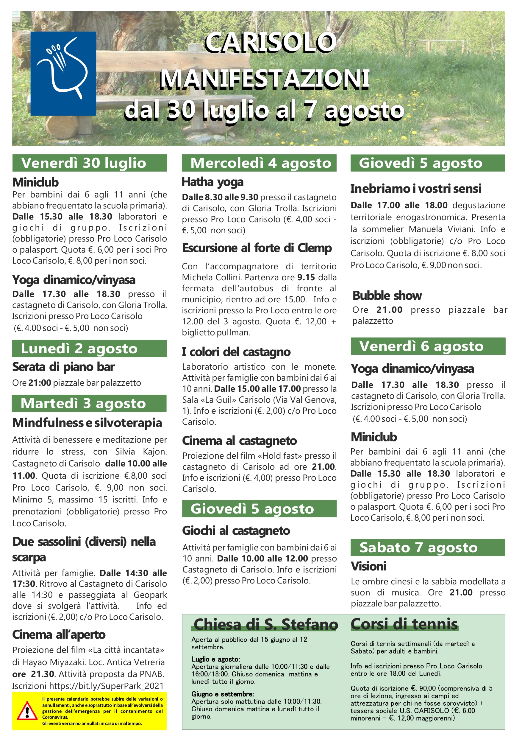CARISOLO. Quella che comincia oggi sarà un settimana ricca di attività a Carisolo. Dalla Pro Loco il programma: