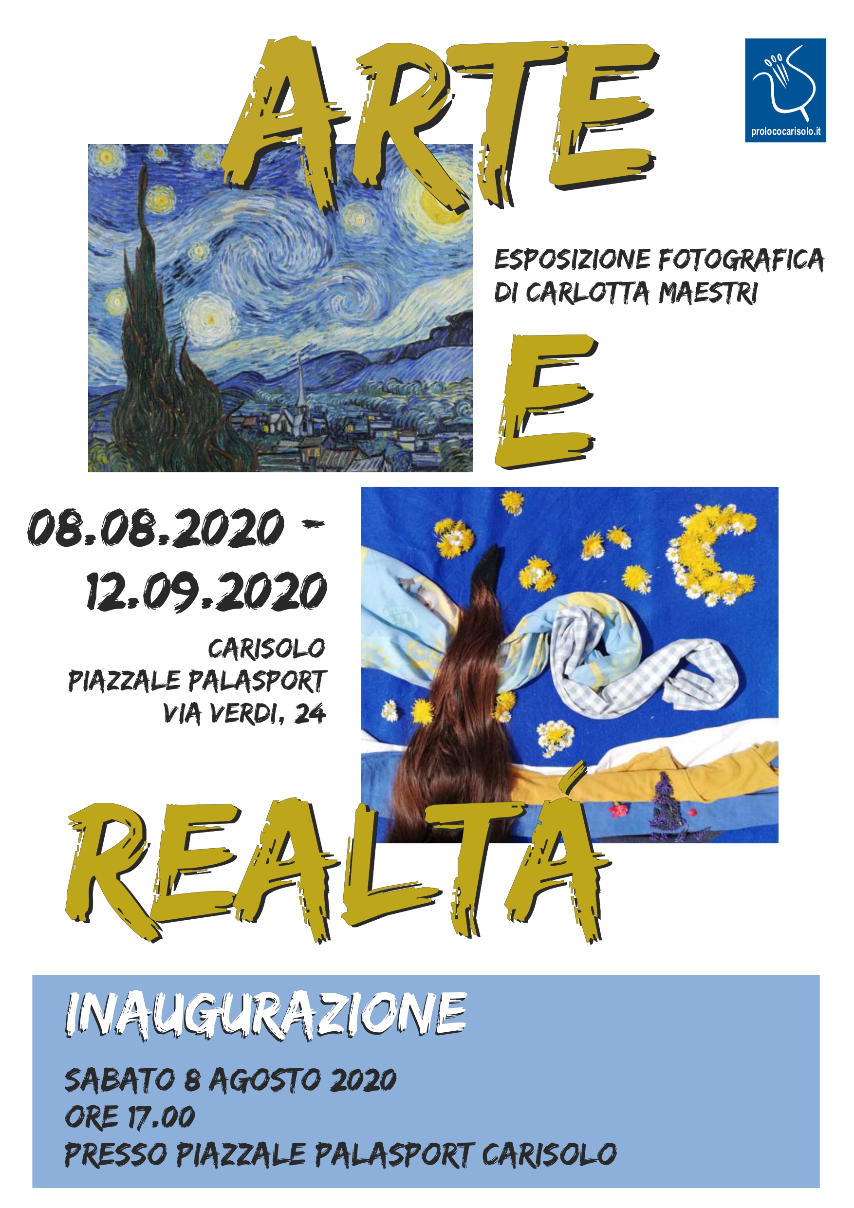 Sabato 8 agosto inaugurazione della mostra "Arte e realtà", l'esposizione fotografica di Carlotta Maestri, ore 17 presso il piazzale del palasport. Maggiori informazioni sulle locandine annesse degli eventi.