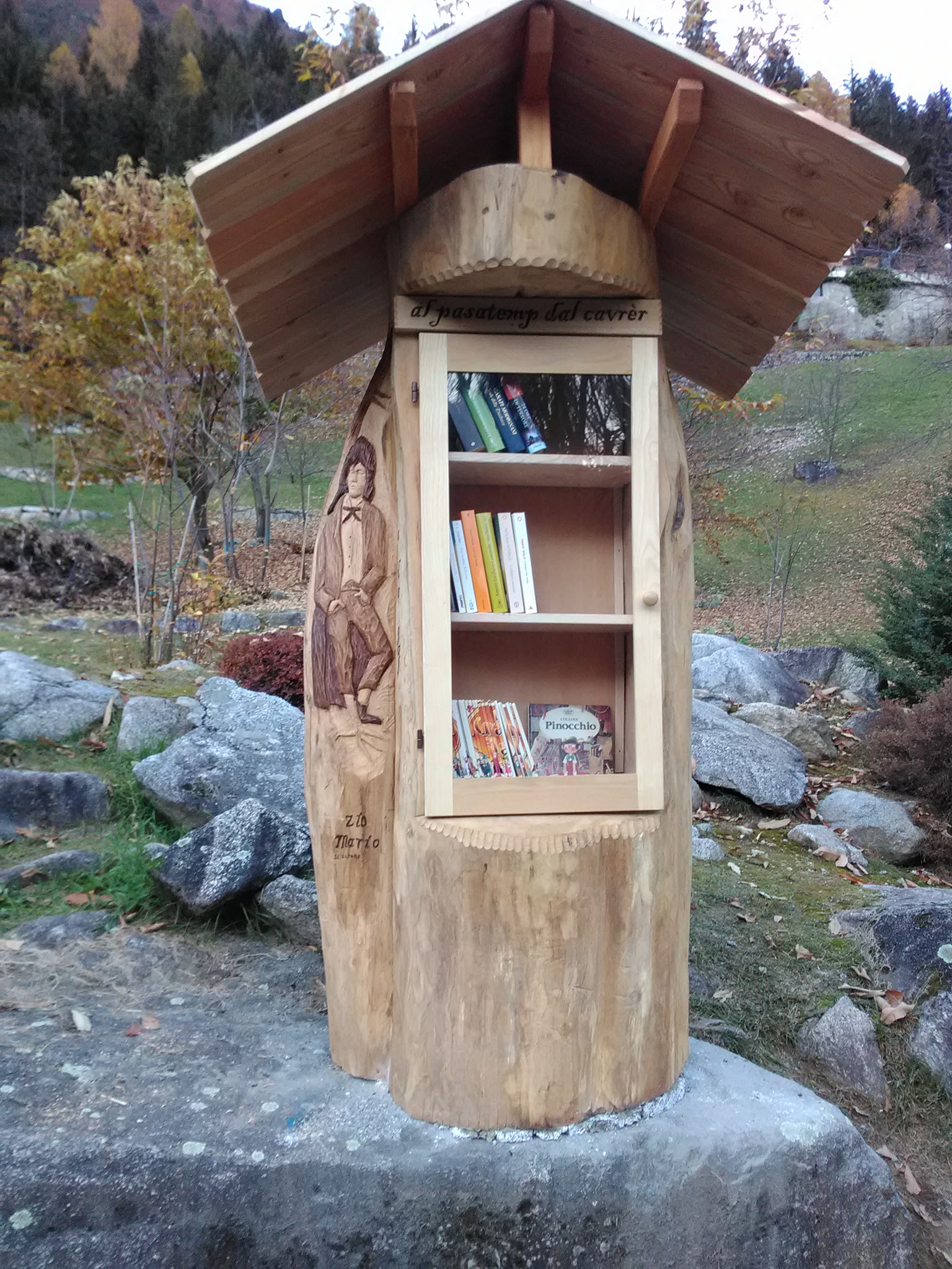 «Continua la valorizzazione del castagneto di Carisolo. Libreria realizzata in collaborazione con zio Mario che ha scolpito Ciata da gal, con annessa sala lettura» fa eco Gianni. Davvero un ottimo lavoro. Avete creato una piccola oasi della quale ne possono godere tutti.