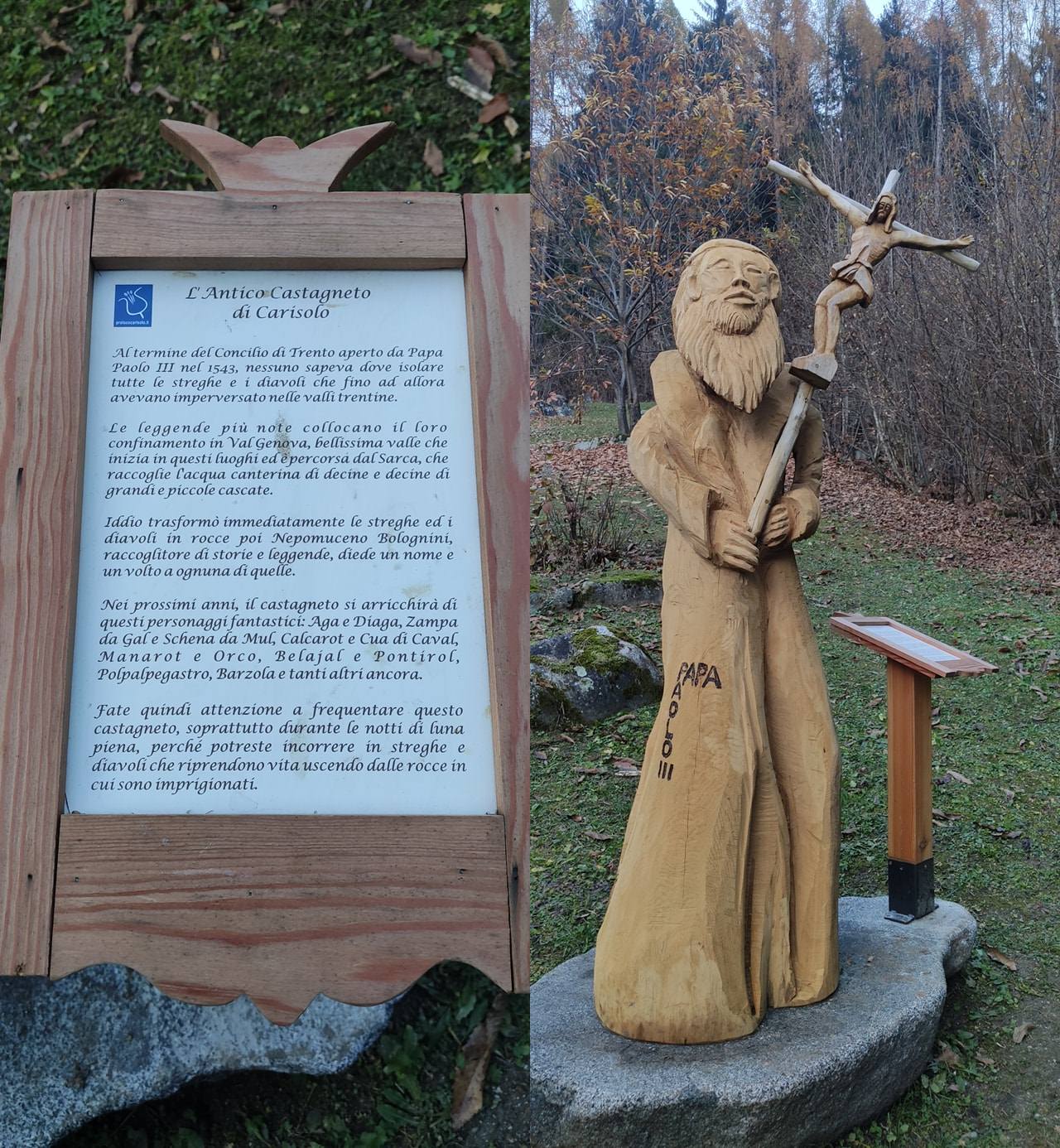 Grazie al lavoro instancabile dei volontari guidati da Gianni Morandi oggi è stato ancora impreziosito con altri interventi tra i quali una nuova “libreria”, una sala lettura e «un lungo ed interessante percorso sulle leggende di streghe e personaggi misteriosi che vivevano nella Val di Genova ideato e portato avanti con tanta passione e volontà dal nostro Gianni Morandi grande artista di Carisolo e custode del castagneto, dalla ProLoco di Carisolo e da scultori e volontari» scrivono sul profilo facebook i suoi compaesani.