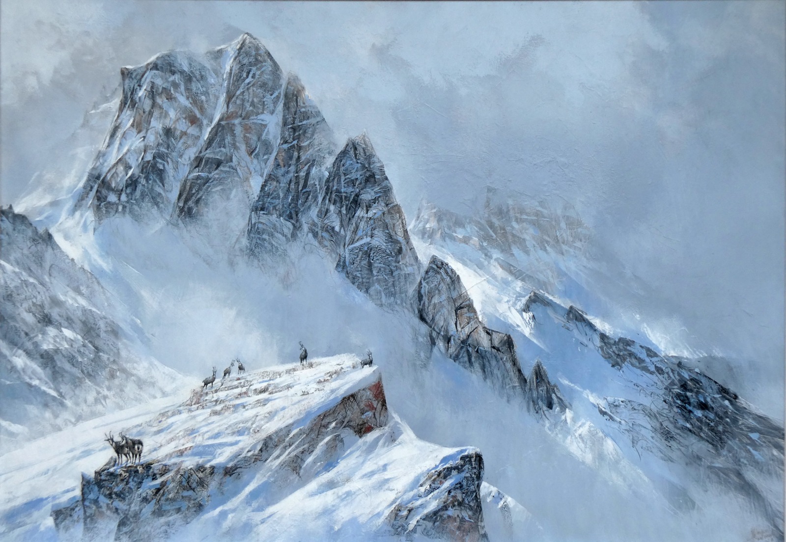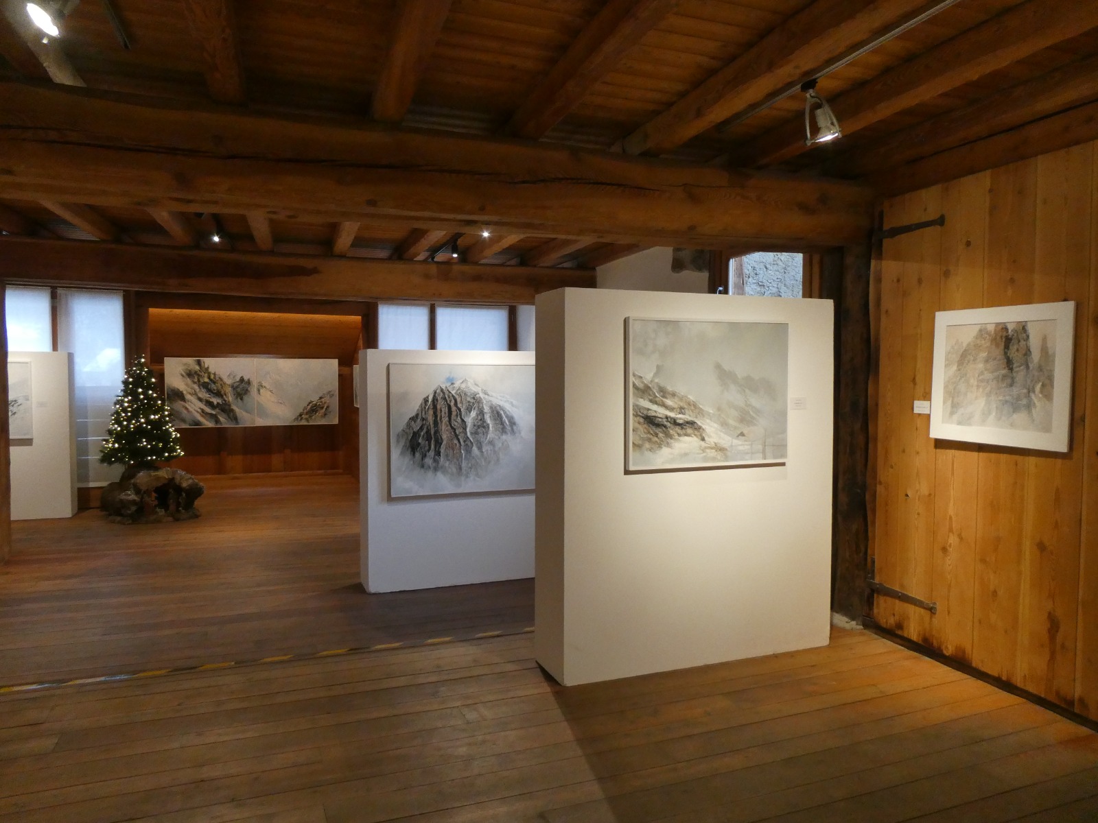 PORTE DI RENDENA. Nello spazio espositivo di Casa Cus, le larghe assi di larice e il bianco delle nevi delle opere di Mauro Berlanda lasciano incantato lo sguardo. Un viaggio nel grande universo della montagna che ci porta a contemplare la natura rarefatta delle alte quote. Una composizione di spigoli, gole, valli, ghiaioni, cenge che mai perdono l'equilibrio nella spazialità della montagna e delle sue distanze. Mauro Berlanda ne restituisce la forza arcaica e la carica immaginativa che apre alla vertigine. Sono altre montagne, più interiori, come queste dimore della neve dove è il silenzio il protagonista.