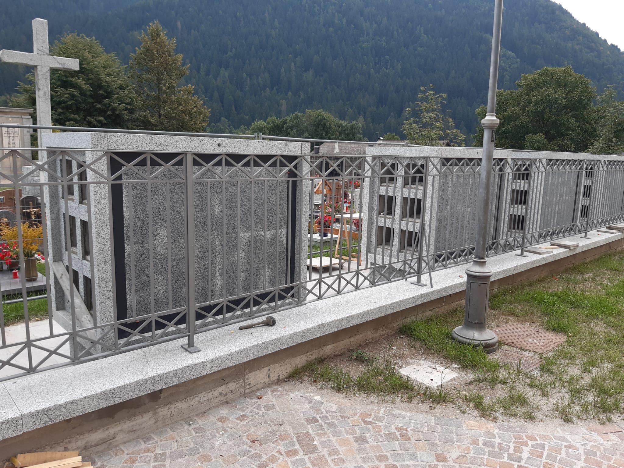 JAVRE'. L’amministrazione comunale di Porte di Rendena sta portando avanti un ampio progetto che riguarda i tre cimiteri presenti sul proprio territorio. Il lavoro più visibile è quello attualmente in corso al camposanto di Javrè, dove sono in fase di ultimazione le opere per la posa dei loculi. I lavori sono a buon punto, infatti la ditta incaricata sta rivestendo le strutture, già realizzate, con le lastre di granito. È un servizio aggiuntivo, di cui questo cimitero era sprovvisto.